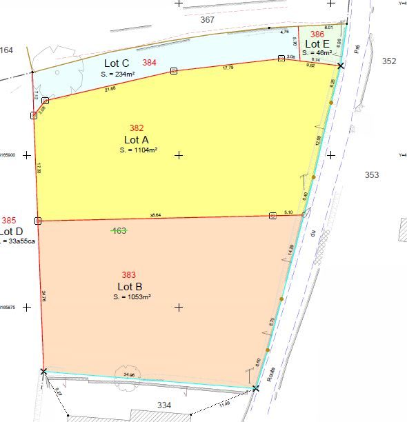 Le terrain concerné est le lot A. L'accès devra se fait obligatoirement par le E.