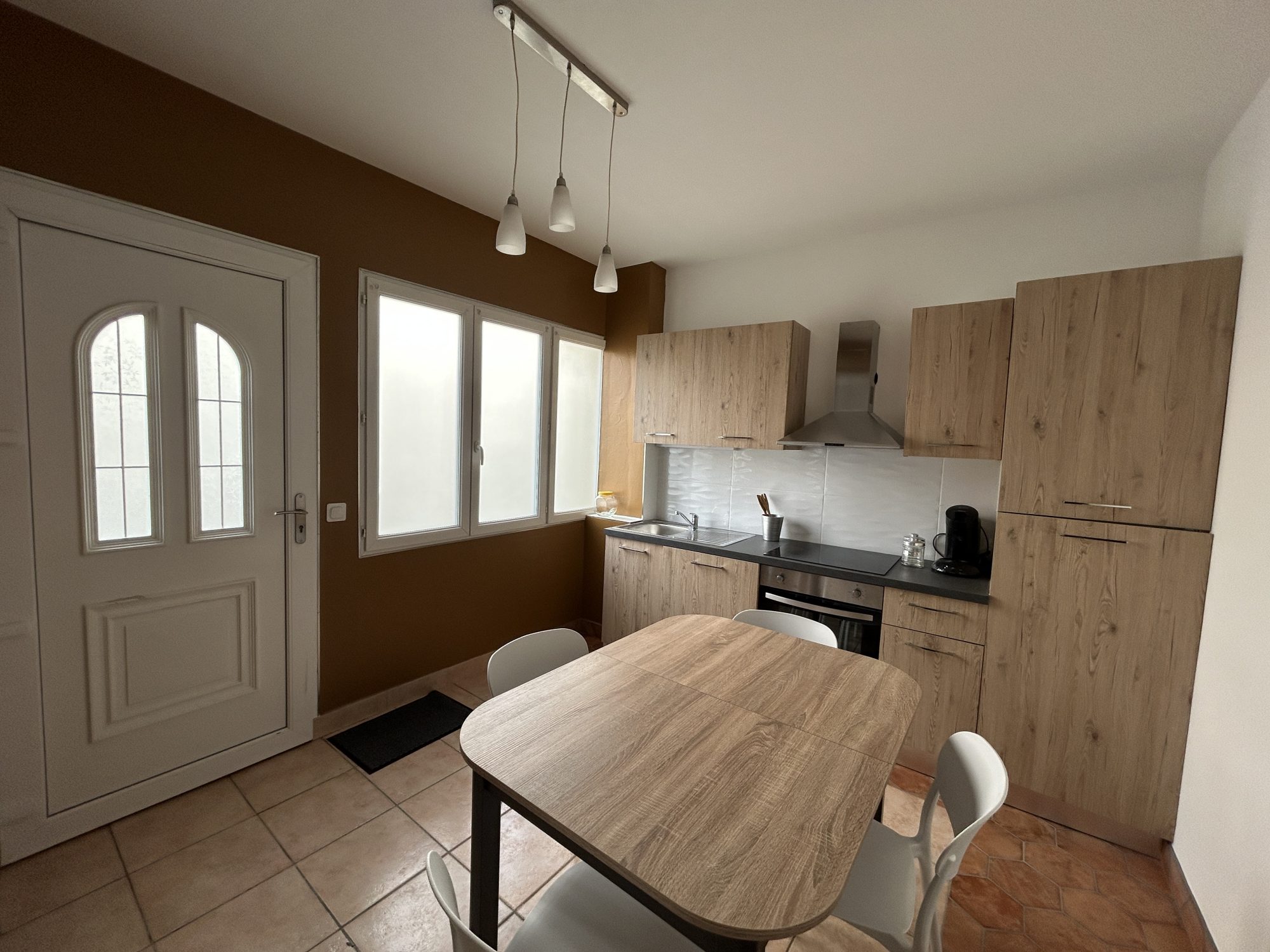 L'immeuble se compose : au rez-de-chaussée d'un T2 meublé rénové, comprenant une cuisine ouverte sur le séjour, une chambre et une salle d'eau avec WC.