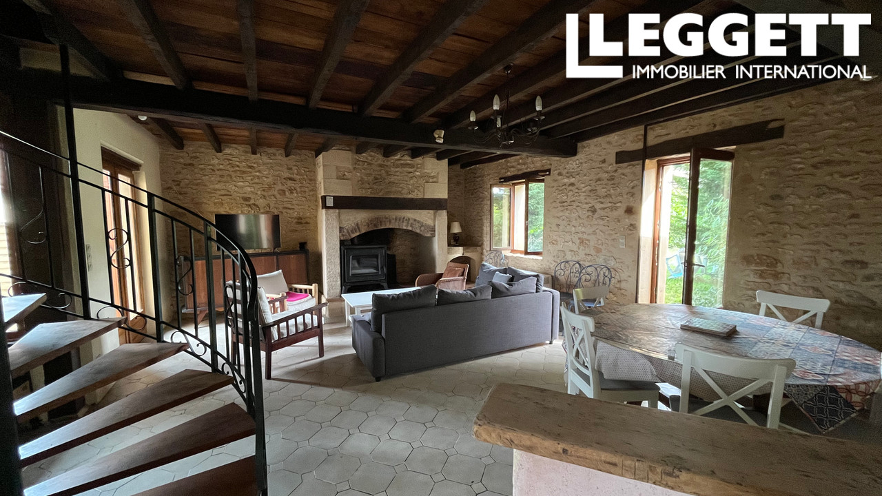 La première maison, de 135 m², comprend un salon lumineux de plus de 30 m² avec poutres et pierres apparentes, ainsi que des chambres spacieuses de 10 à 18 m². Des travaux permettront d'adapter cette maison au goût du jour.