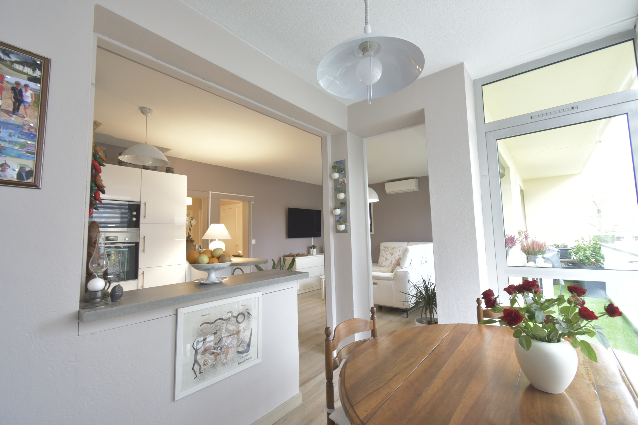 11493 - Résidence du Lac, en rez-de-chaussée surélevé, appartement entièrement rénové de type 3 avec balcon et loggia exposés Sud Ouest composé : grande entrée avec placard vestiaire, cuisine ouverte aménagée et entièrement équipée ouvert la salle à manger et le salon, deux belles chambres avec placards, salle de douche, toilettes séparés. Pompe à chaleur, balcon et cave. Copro de 24 lots principaux - Charges moy.copro./an de 2945 EUR