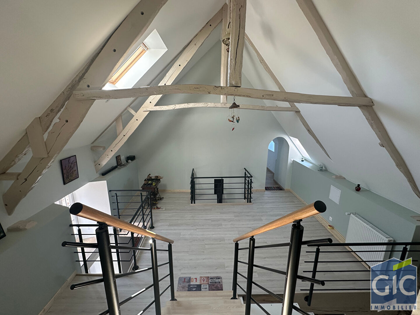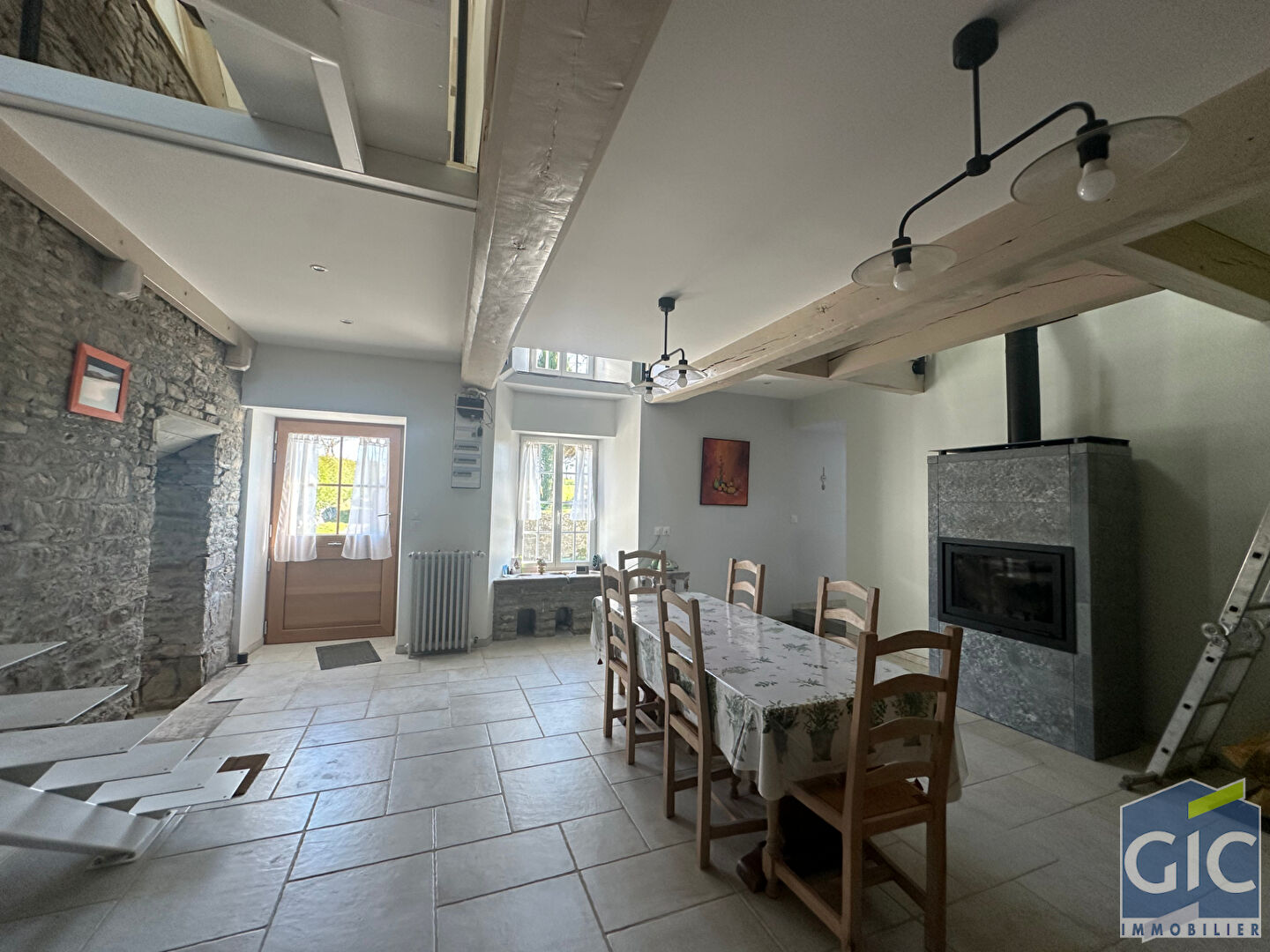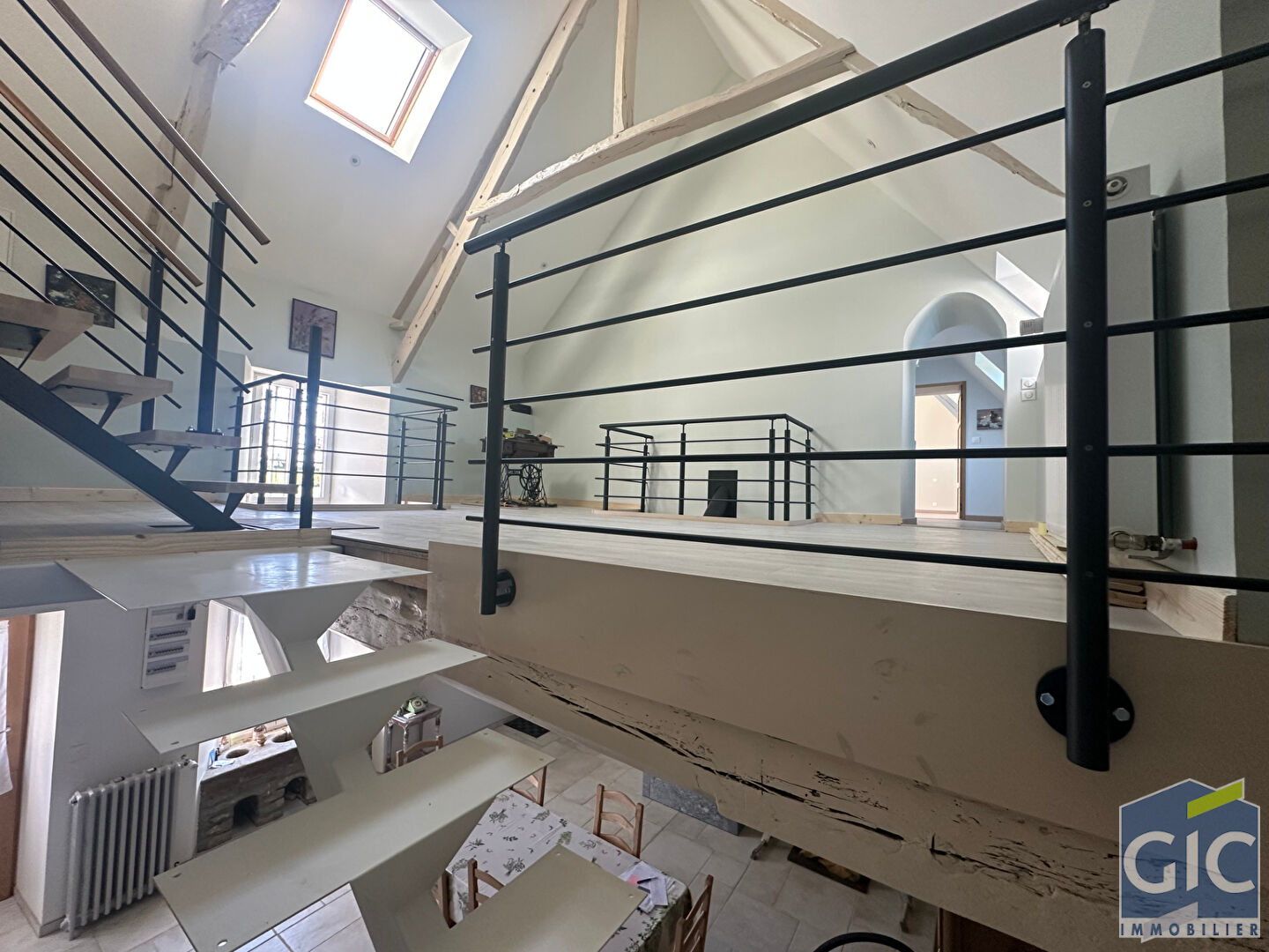 à l 'étage: grande mezzanine ouverte par endroit sur pièce de vie du RDC, salle d'eau avec douche à l'italienne, 4 chambres dont une très grande avec hauteur cathédrale et une avec point d'eau. Garage et chaufferie attenants. ANCIEN FOUR A PAIN DE 1793 A RENOVER.