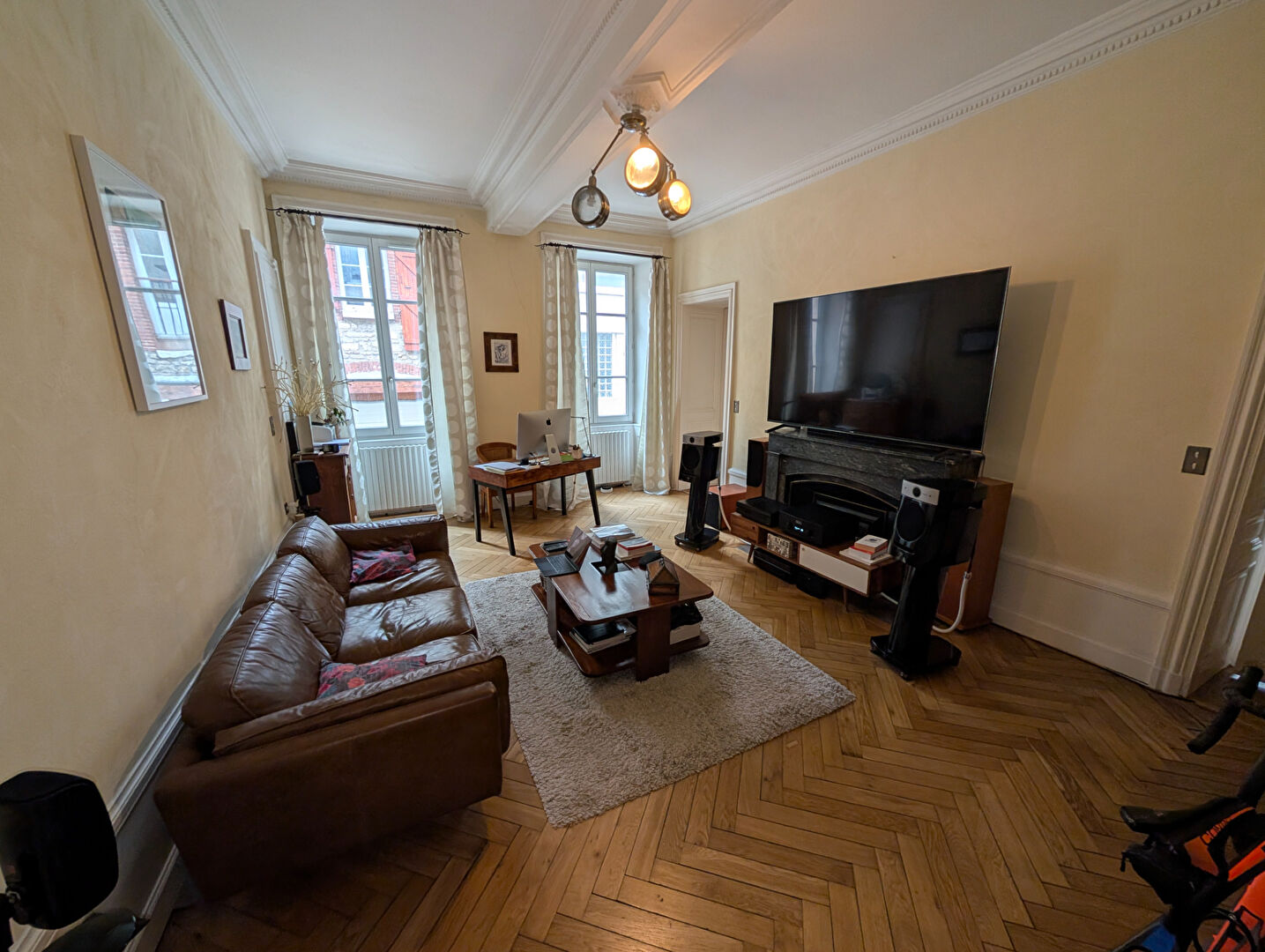 VIENNE centre (38200) - Quai du Rhône - Dans un immeuble Bourgeois de 1800 avec cour intérieure - Superbe Appartement de caractère de 236 M² habitables couplé à une VASTE TERRASSE sur le Rhône de 70 M² accessible depuis la pièce à vivre - Habitation de 8 pièces en triple expositions - Magnifique volume composé d'un double séjour plein Ouest d'environ 54 M² avec cheminée , parquet, boiserie, Cuisine équipée et ouverte - Imposant Hall central de desserte sur carreaux de ciment - L'espace nuit présente 5 chambres parquetées, une pièce "TV ", 2 pièces d'eau, un bureau et une buanderie - Belle distribution générale et nombreux rangements - Chauffage individuel gaz - GARAGE de 29 M² et généreuse Cave - Ensemble dans une copropriété de 10 lots principaux - Charges courantes annuelles : 1500 Euros - Pas de procédure en cours