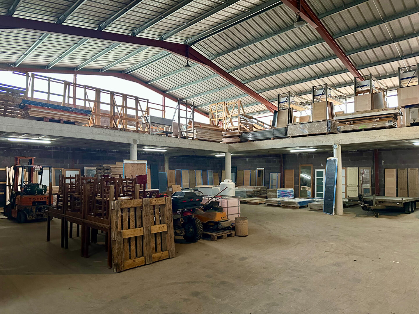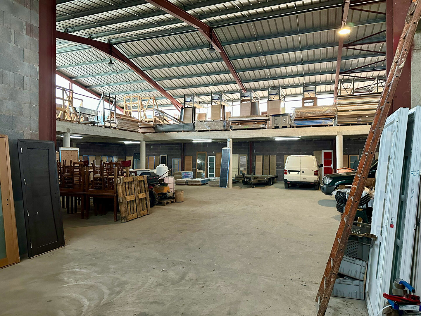 Entrepôt de stockage d'environ 520 m² au sol ainsi qu'une mezzanine de 250 m², donnant environ 770 m² exploitables, ainsi qu'un espace supplémentaire d'environ 70 m² au sol, encore non aménagé mais pouvant être fermé avec les évacuations d'eau en attente. Grand espace extérieur clôturé.