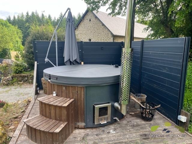 À vendre, charmante maison de campagne située dans un paisible hameau de trois maisons, à proximité de Treignac et du lac de Bariousse. Entourée d'un vaste terrain de 17 448 m², en partie clos, elle offre un cadre verdoyant et serein, idéal pour les amateurs de nature. La propriété dispose d'une terrasse, d'un carport, d'un abri de jardin ainsi que d'un magnifique spa chauffé au bois pouvant accueillir jusqu'à six personnes.