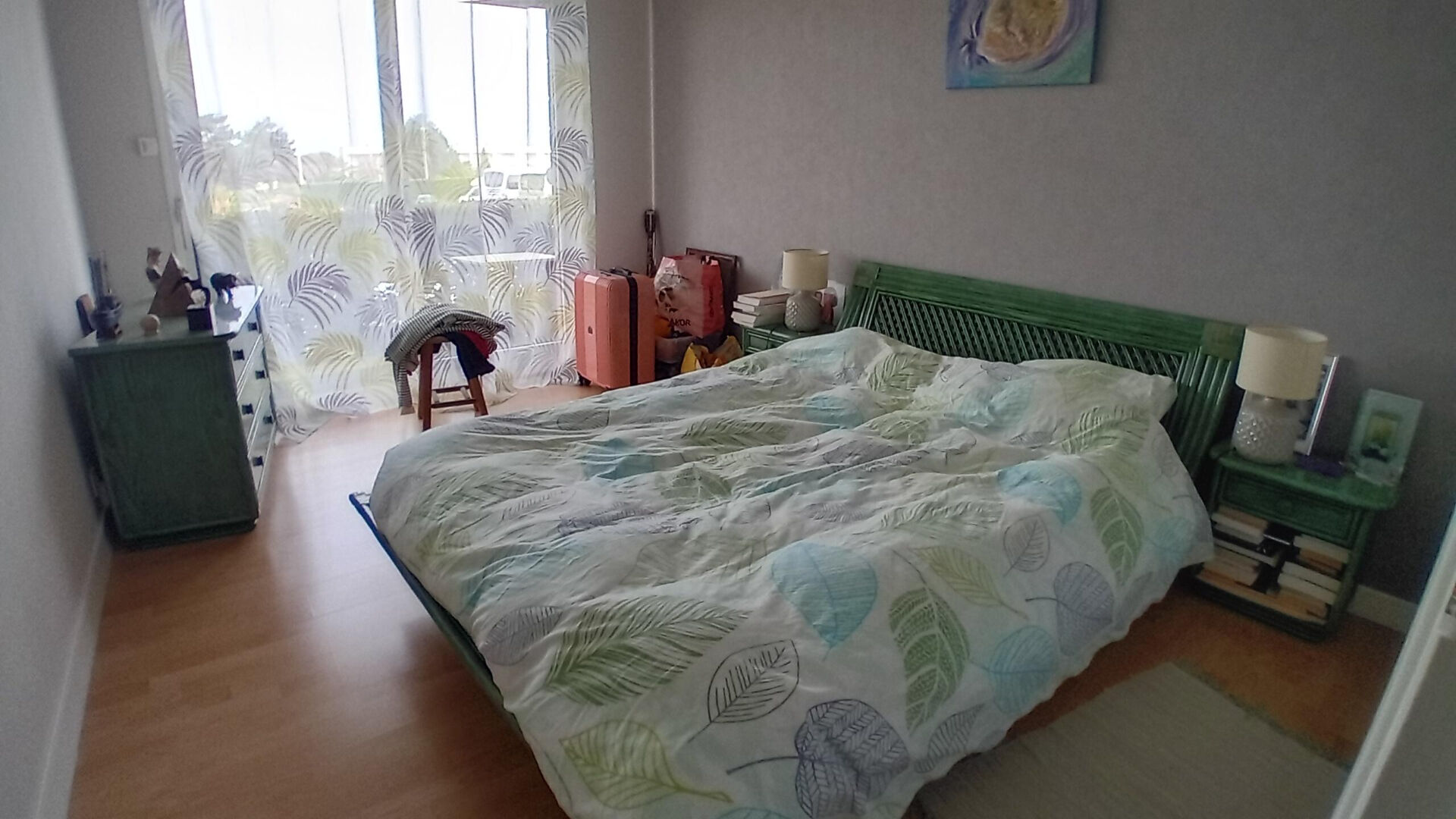 Entrée, dégagement avec placard, séjour lumineux donnant sur une terrasse, cuisine aménagée et équipée, deux chambres, salle de bains, WC.