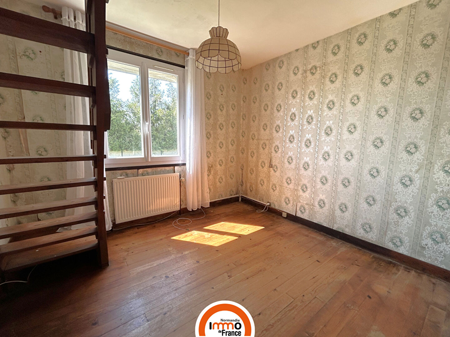 Cette maison se compose, au rez-de-chaussée, d'un double séjour vaste et lumineux agrémenté d'un poêle à granulés, une cuisine séparée à rafraichir offrant de nombreuses possibilités d'aménagement selon vos goûts, une grande chambre de 12m², parfaite pour une chambre parentale.
