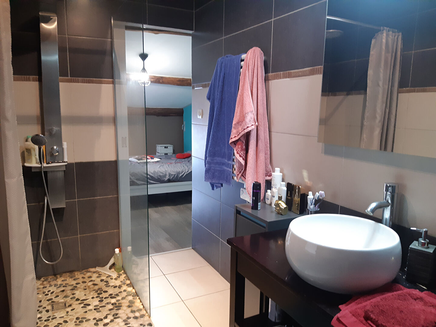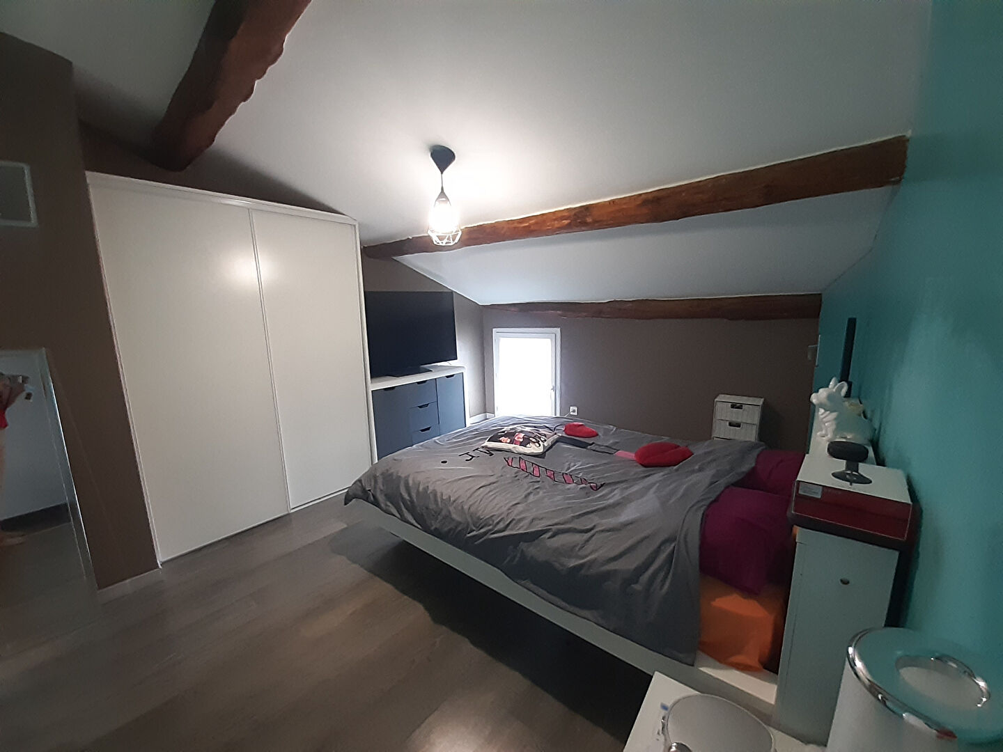 Maison de 3 pièces de 60m2 composée, au rez-de-chaussée, d'une cuisine entièrement aménagée et équipée, ouverte sur le salon et un WC. A l'étage, deux chambres dont une avec placard et une salle d'eau avec WC.