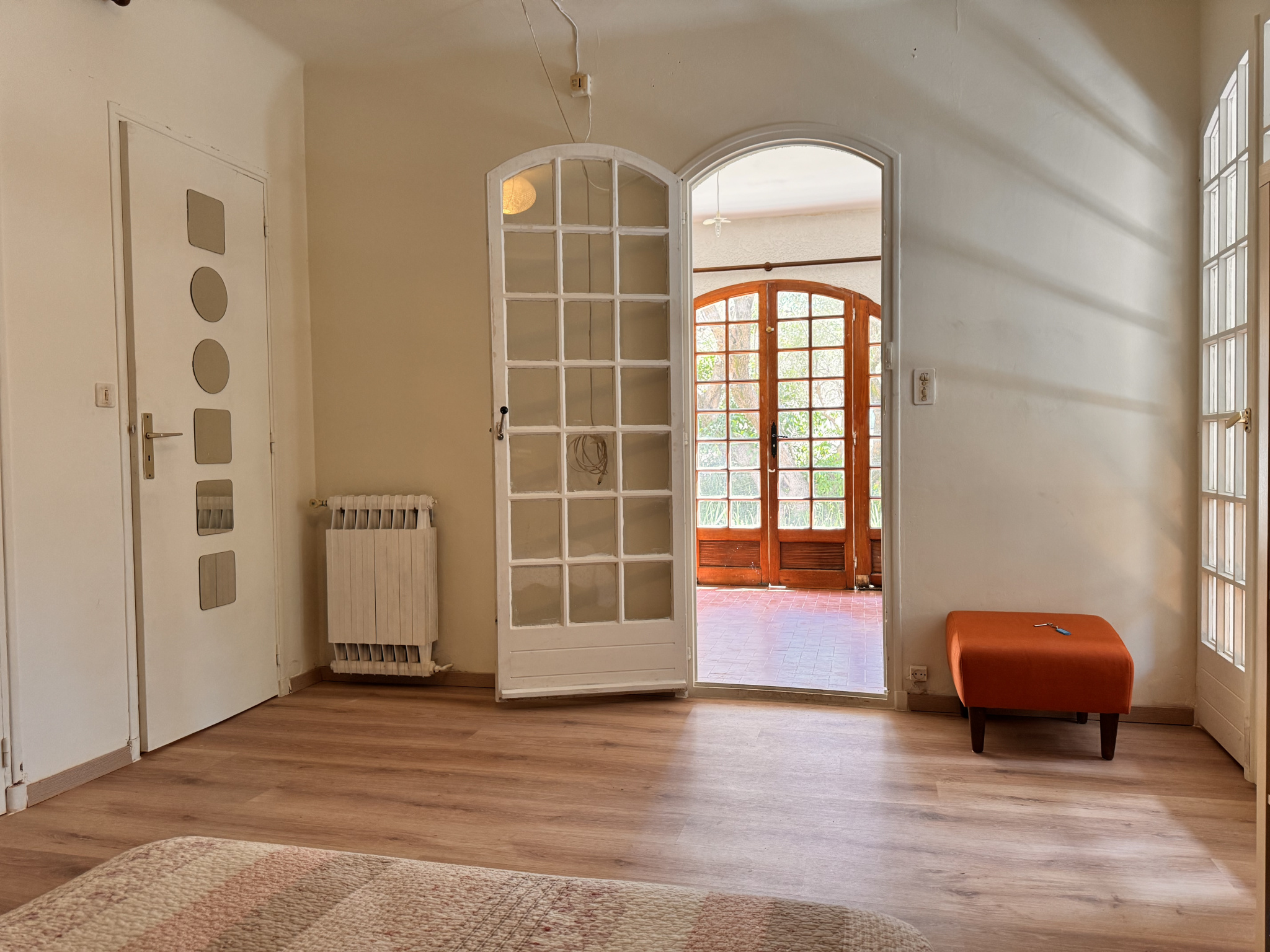 La maison propose cinq chambres, dont deux situées en rez-de-chaussée. À l'étage, la pièce de vie profite d'une belle luminosité et s'ouvre sur une terrasse exposée plein Sud. La cuisine de style provençal, avec son accès direct vers l'extérieur, s'inscrit parfaitement dans une organisation pensée pour la vie familiale. Trois chambres supplémentaires viennent compléter l'espace nuit et peuvent également accueillir un bureau ou une salle de jeux selon les besoins.