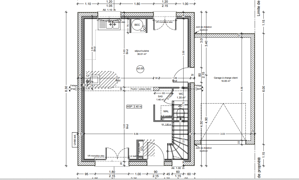 Elément vendu avec la maison : Ballon thermodynamique, poêle à granulé, escalier, sanitaire (douche et wc).