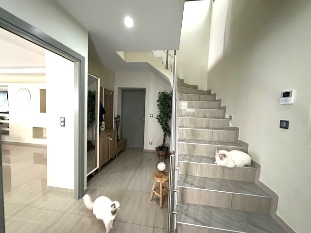 Sa cuisine séparée vous propose un bel espace très agréable donnant aussi sur une des différentes terrasses, pour plus de convivialité, et vous propose un cellier attenant pour un rangement obtimal. Votre Future Maison vous propose 5 chambres dont une se trouvant au rez de chaussée (18 m2) et 4 à l'étage (10 ,11 et 13 m2) dont une suite parentale de plus de 20 m2, ainsi que deux wc et une grande salle de bain. Matériaux de Grandes Qualités climatisation réversible en gainable (pompe à chaleur), Termodynamique.