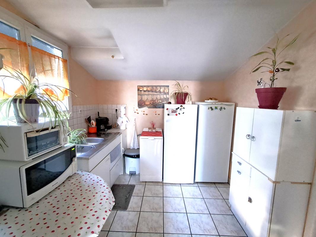 Chaque logement, l'un au RDC et l'autre au premier étage loué chacun 490€/mois HC, dispose d'une pièce de vie d'environ 25m². Cuisine ouverte au RDC (5m²) et cuisine indépendante (8m²) au premier étage. Chaque logement dispose également de deux chambres, d'une salle d'eau et d'un W.C. indépendant.
