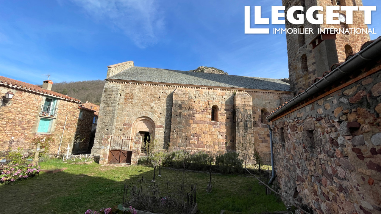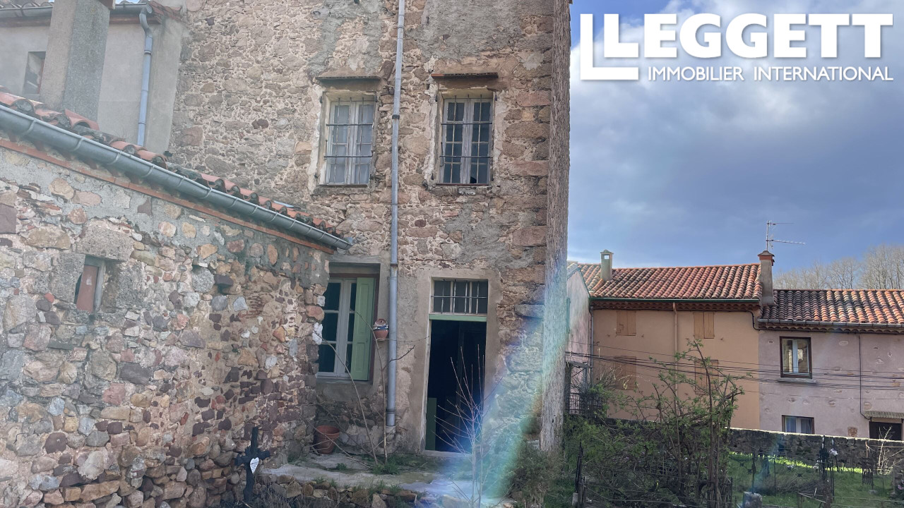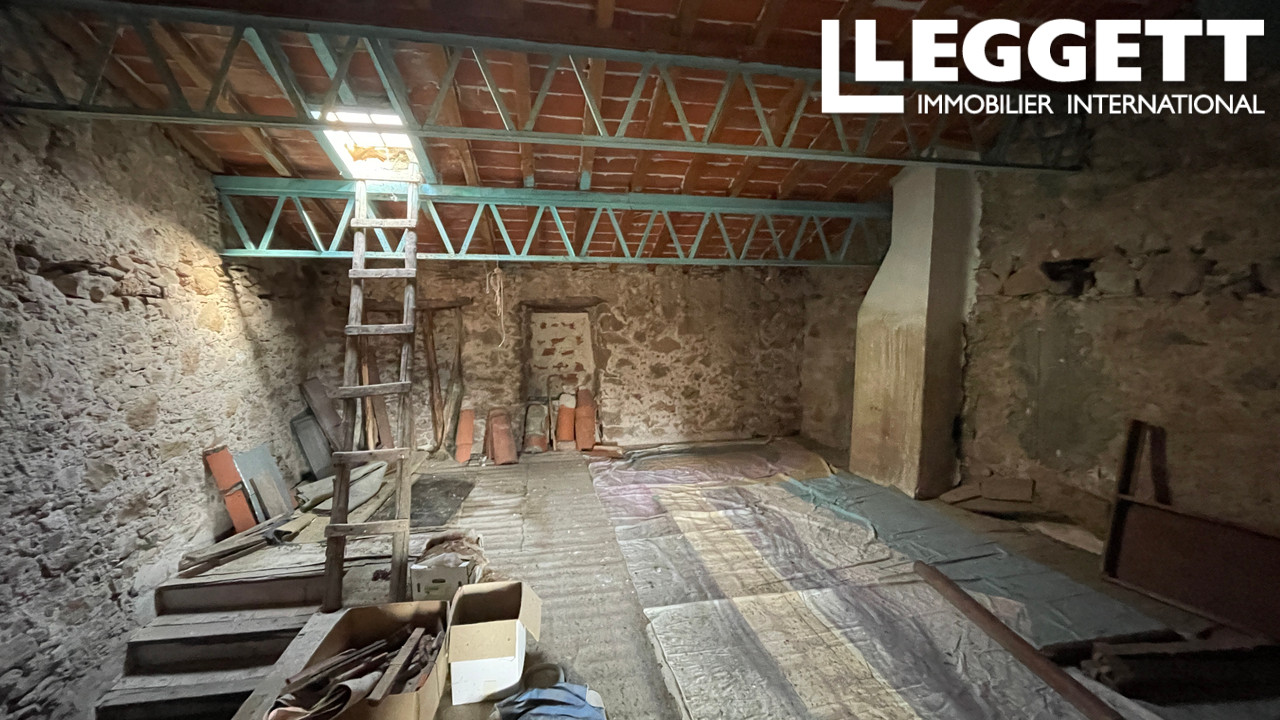 A35779CTG66 - Maison de village traditionnelle sur trois étages (+ grenier) nécessitant une rénovation complète. Nombreux éléments d'origine, notamment des marches en pierre, des sols en dalles et des cheminées, y compris dans la cuisine. Accès à une petite terrasse à l'arrière de la propriété donnant directement sur le cimetière et la belle église du XIIe siècle de Coustouges.