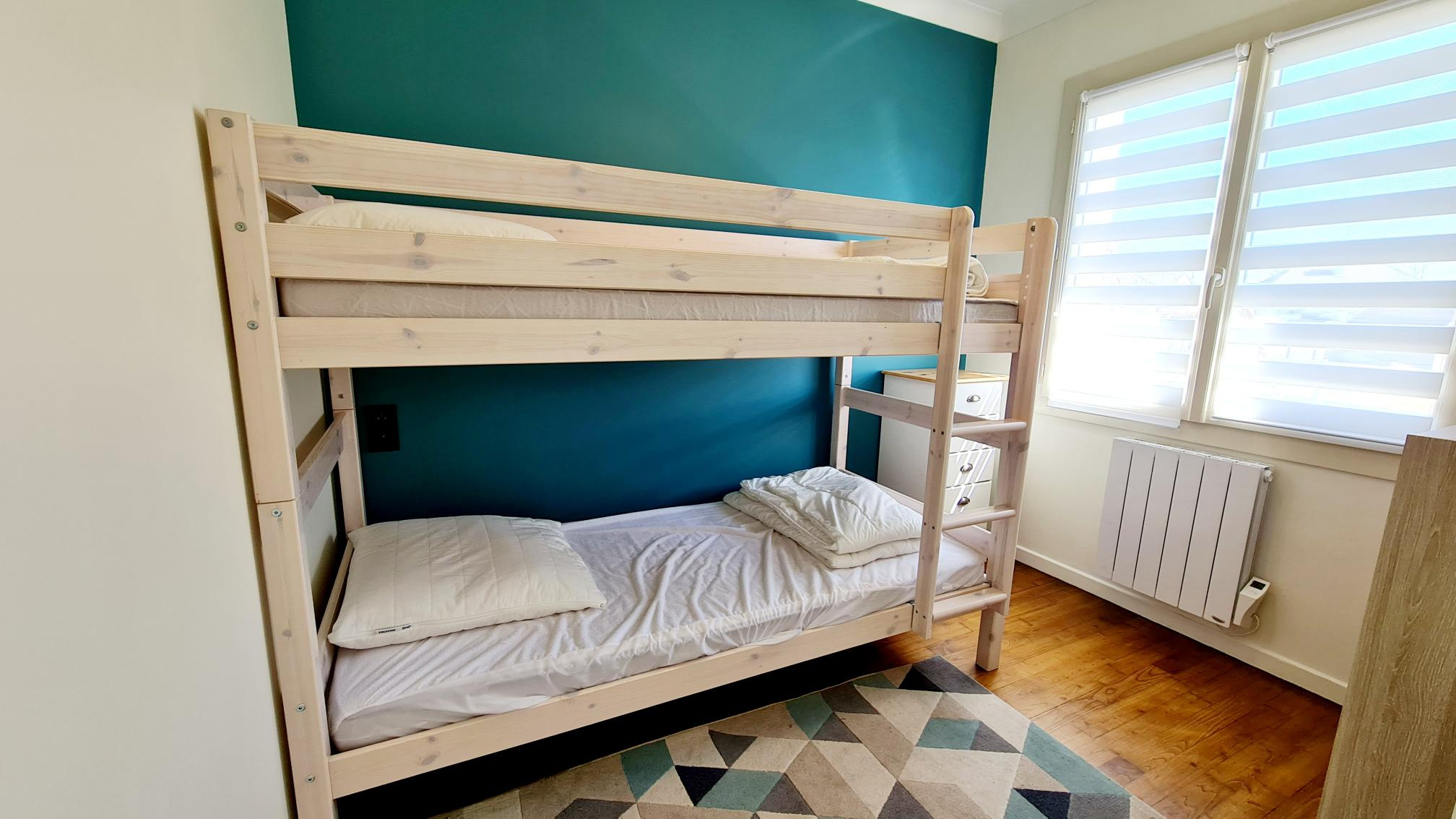 Elle se compose d'une entrée avec rangements, d'un salon/séjour avec poêle à bois, d'une cuisine aménagée et équipée, trois chambres, un bureau, une salle d'eau et un WC indépendant.