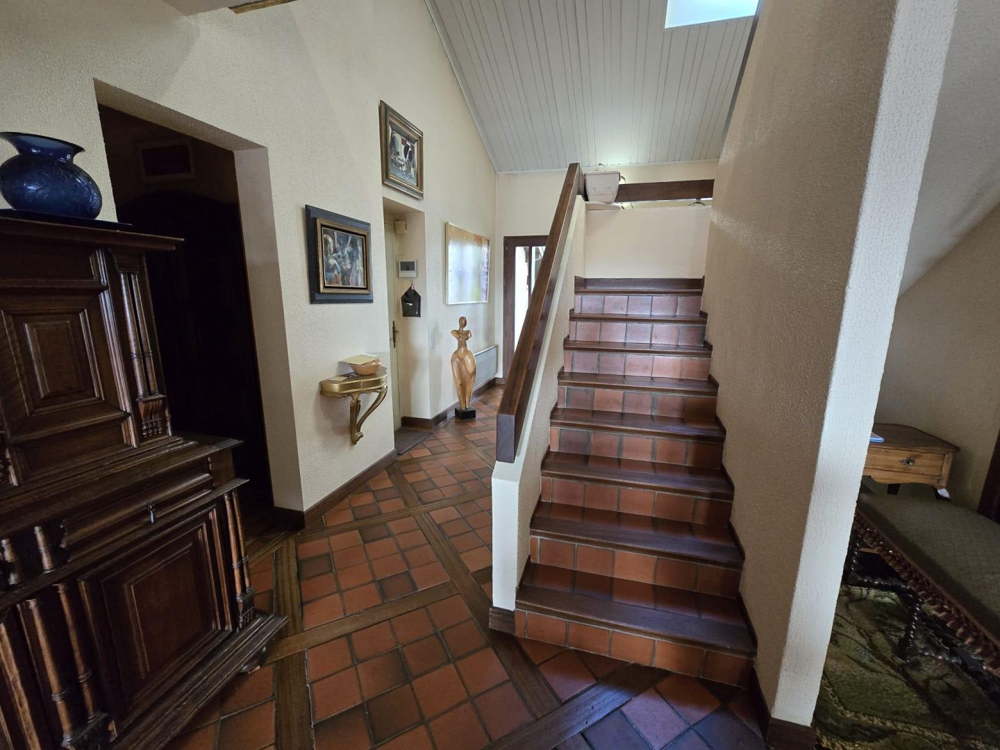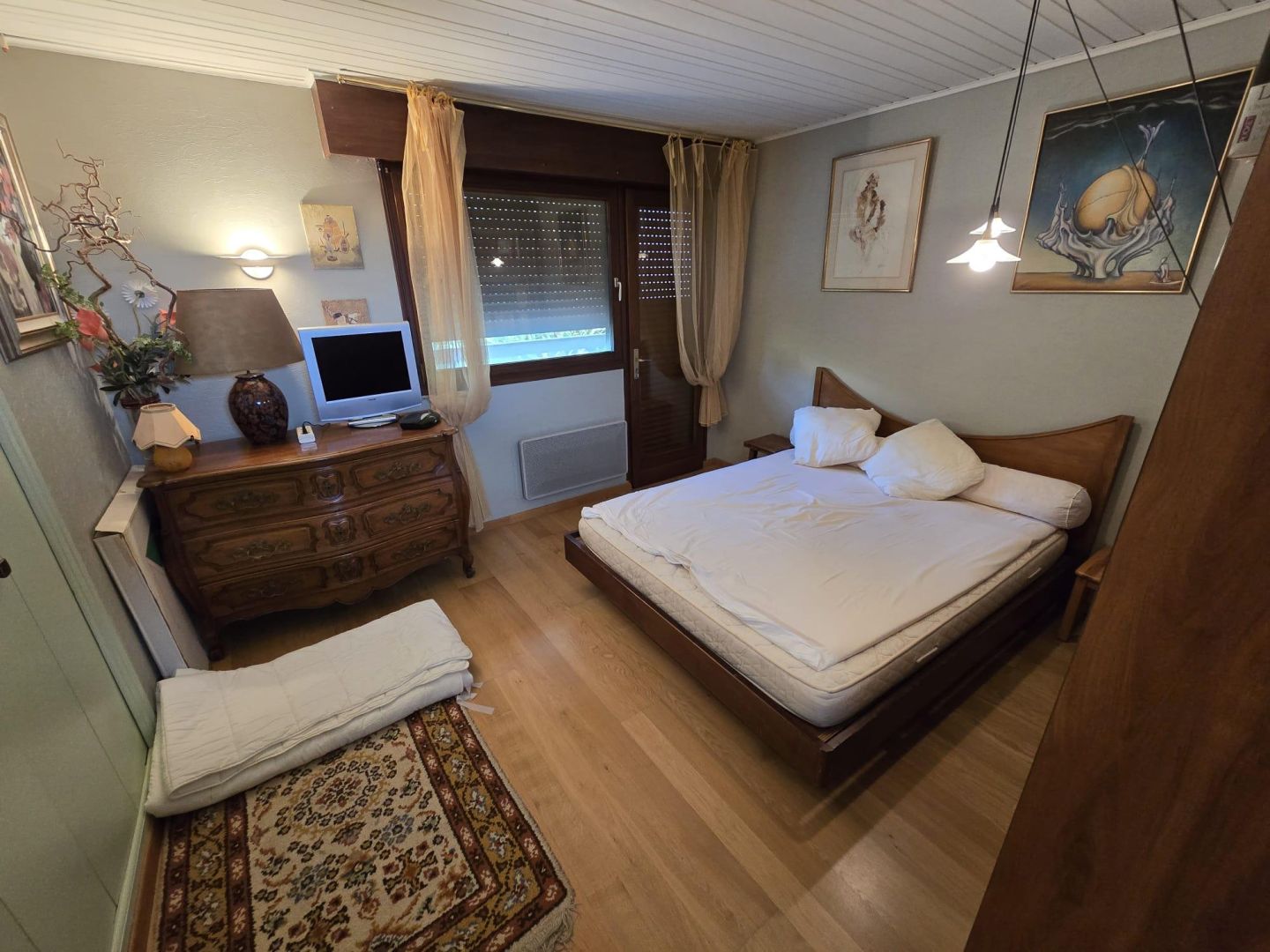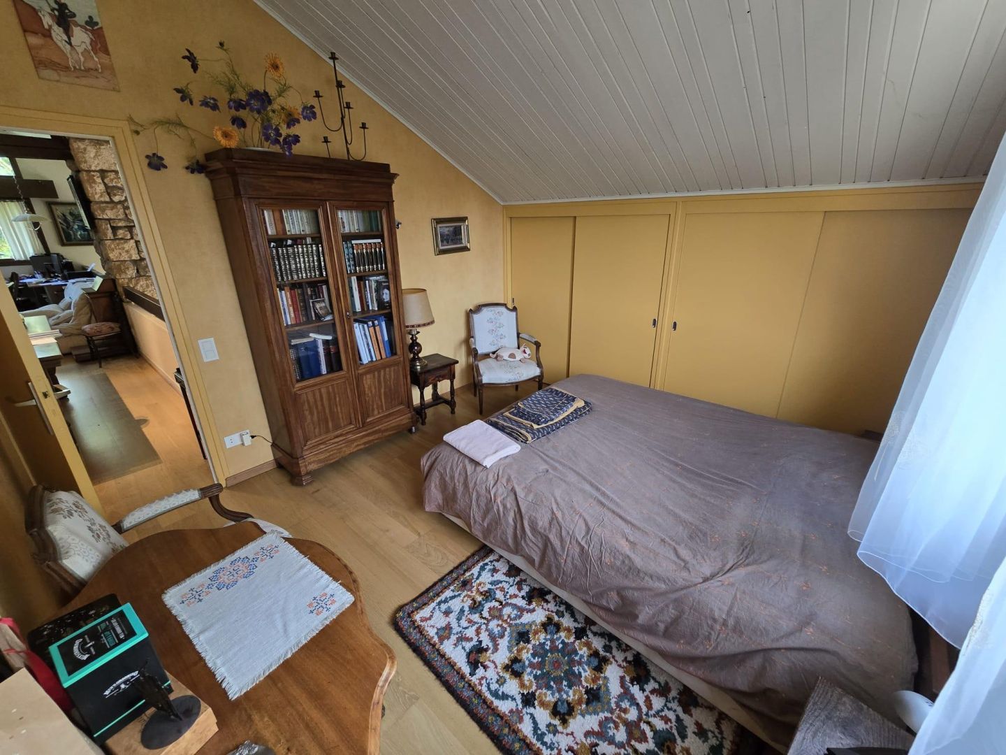 A l'étage vous arrivez sur une grande mezzanine bureau qui dessert 3 chambres, une salle de bains, un WC séparé.