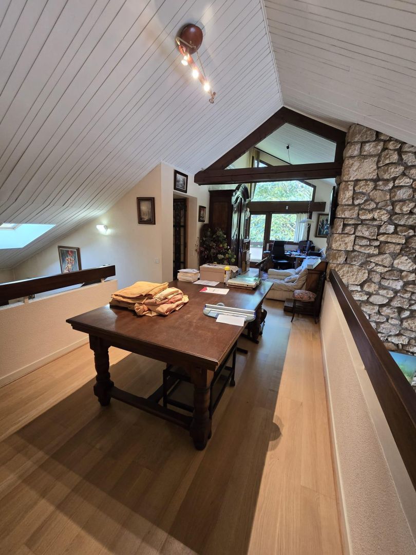 En exclusivité, entre CHAMBERY et LYON , nous vous proposons cette belle maison de 230 m² habitables édifiée sur un terrain clos et arboré de 6000 m² (constructible), dans un secteur résidentiel, calme, ensoleillé et avec un accès rapide à l'A43.