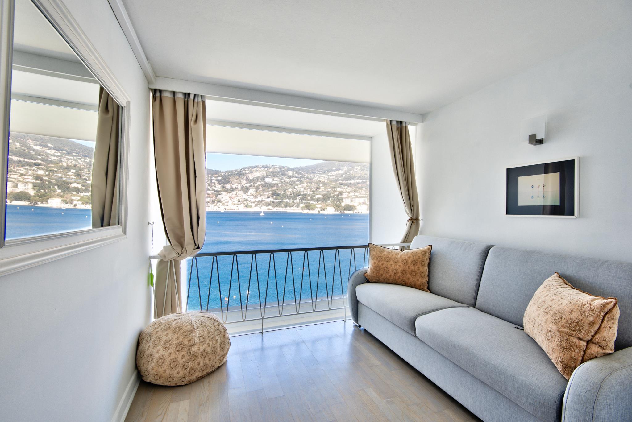 Dans l'unique résidence pieds dans l'eau à Saint Jean Cap Ferrat, 4 pièces en duplex de 90m² en bon état général, belle terrasse de 11m², vue mer époustouflante et sur la vielle ville de Villefranche, parking sécurisé collectif.