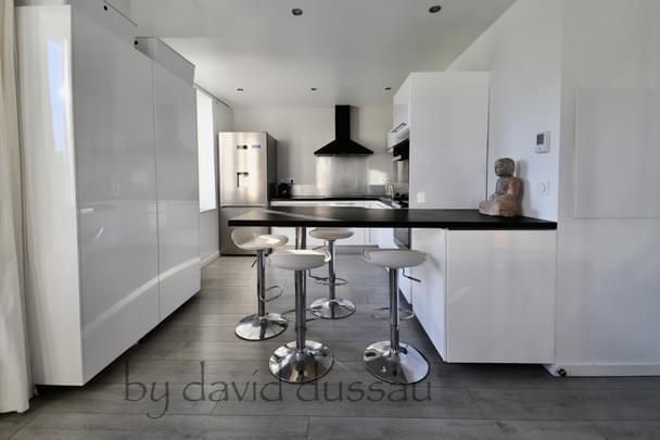 Une partie jour lumineuse composée d'une cuisine et un grand salon, puis un étage avec une partie nuit bénéficiant de 2 chambres spacieuses.