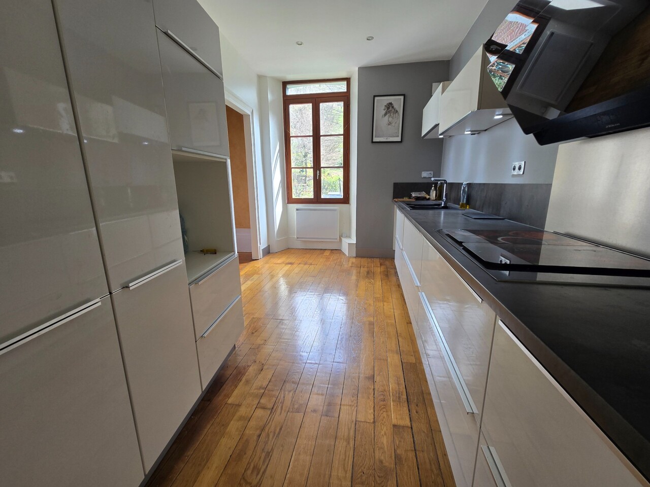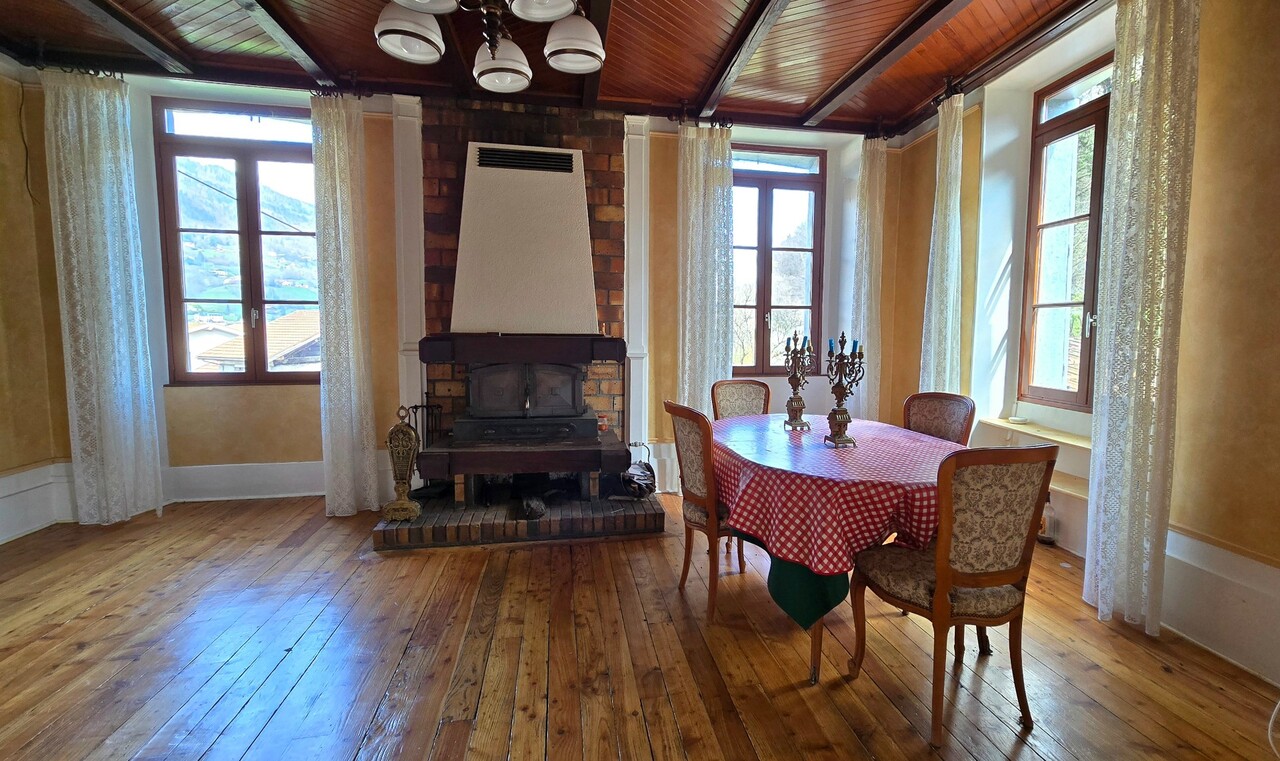 ALLEVARD CENTRE, au "Château", 4P+C de 91m² avec de beaux volumes, du cachet, grand séjour avec cheminée avec insert, cuisine moderne équipée, 3 chambres, beaucoup de rangements, dressing, vue dégagée, sans vis à vis, soleil, 4 parkings, 1 cave et grand grenier. Vidéo sur demande.