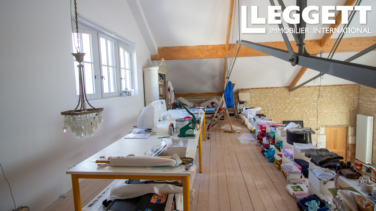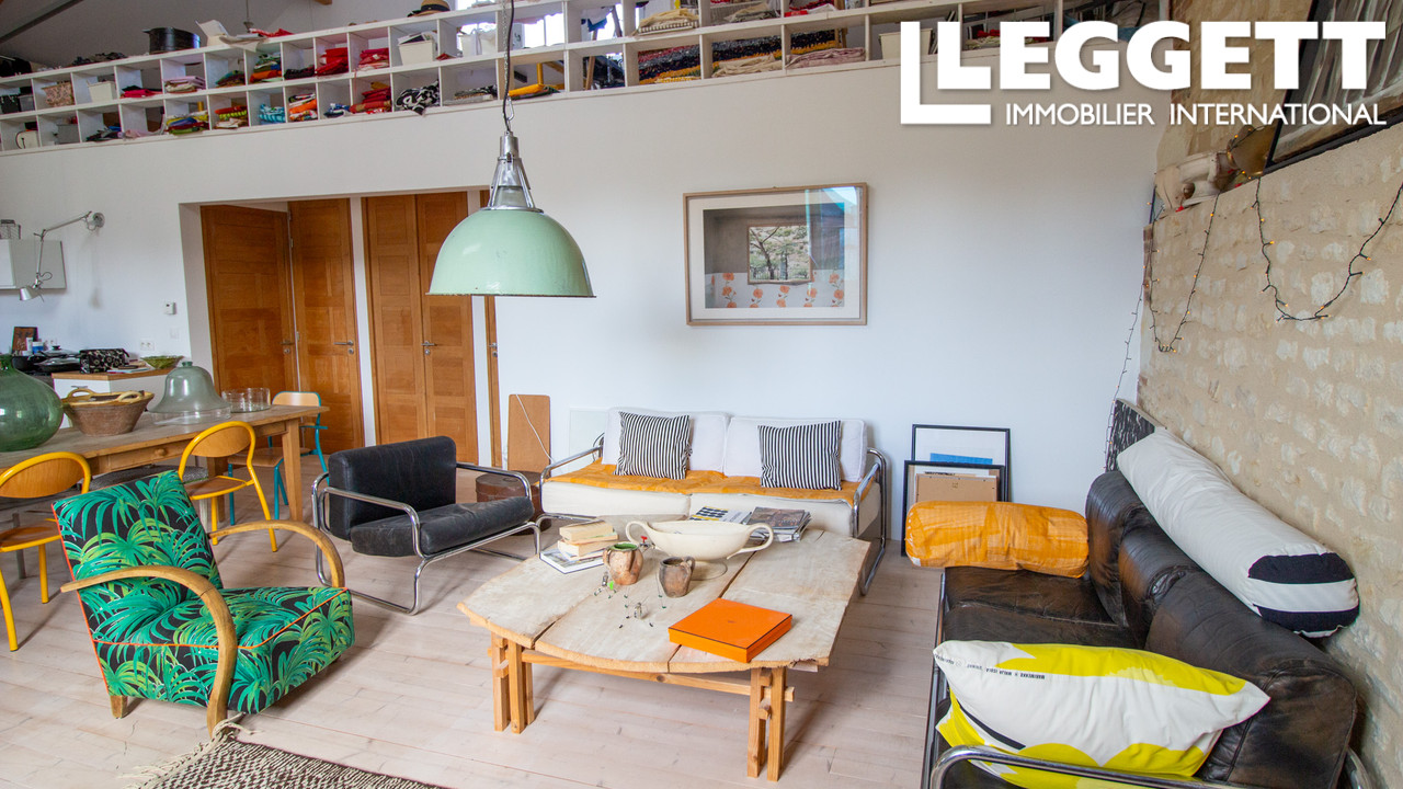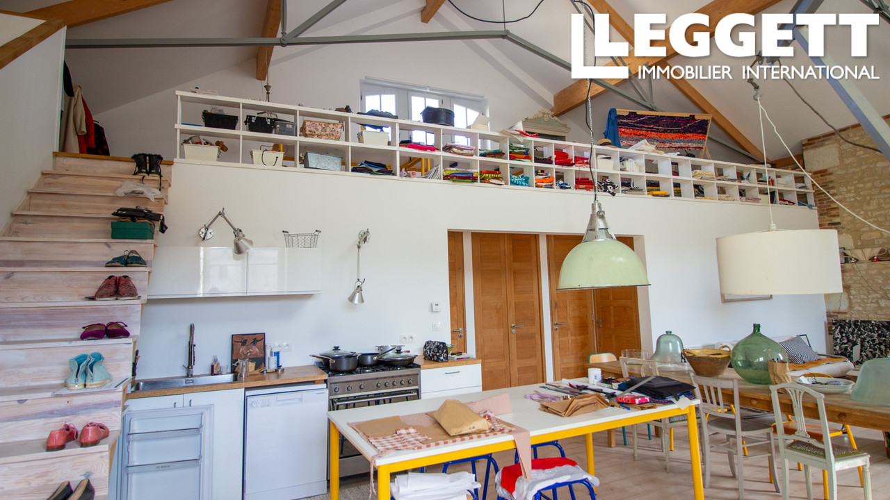 A35055AKB37 - Cet ancien bâtiment industriel au coeur de Richelieu a été restauré avec soin, créant une pièce multifonctionnelle avec une cuisine au rez-de-chaussée et un logement à l'étage. Il conserve encore certains équipements industriels de son passé, ce qui ajoute à son caractère.