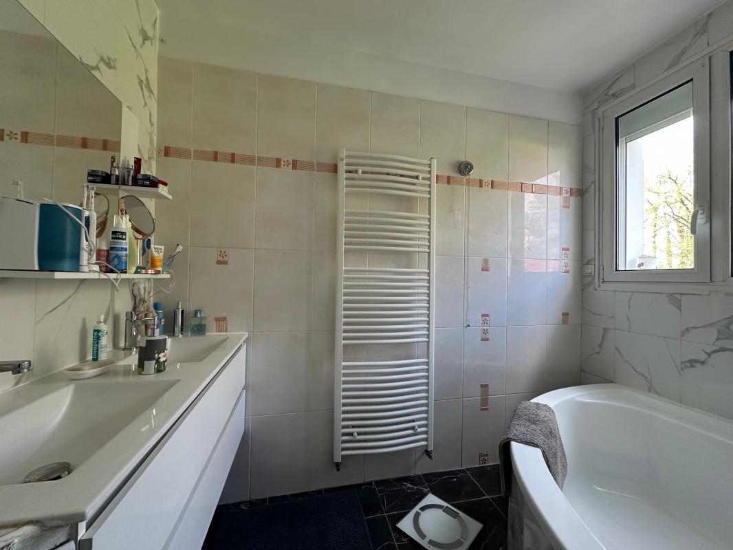 L'espace nuit se compose de trois chambres confortables ainsi qu'une salle de bain moderne équipée d'une double vasque, d'un baignoire d'angle et d'une douche à l'italienne.