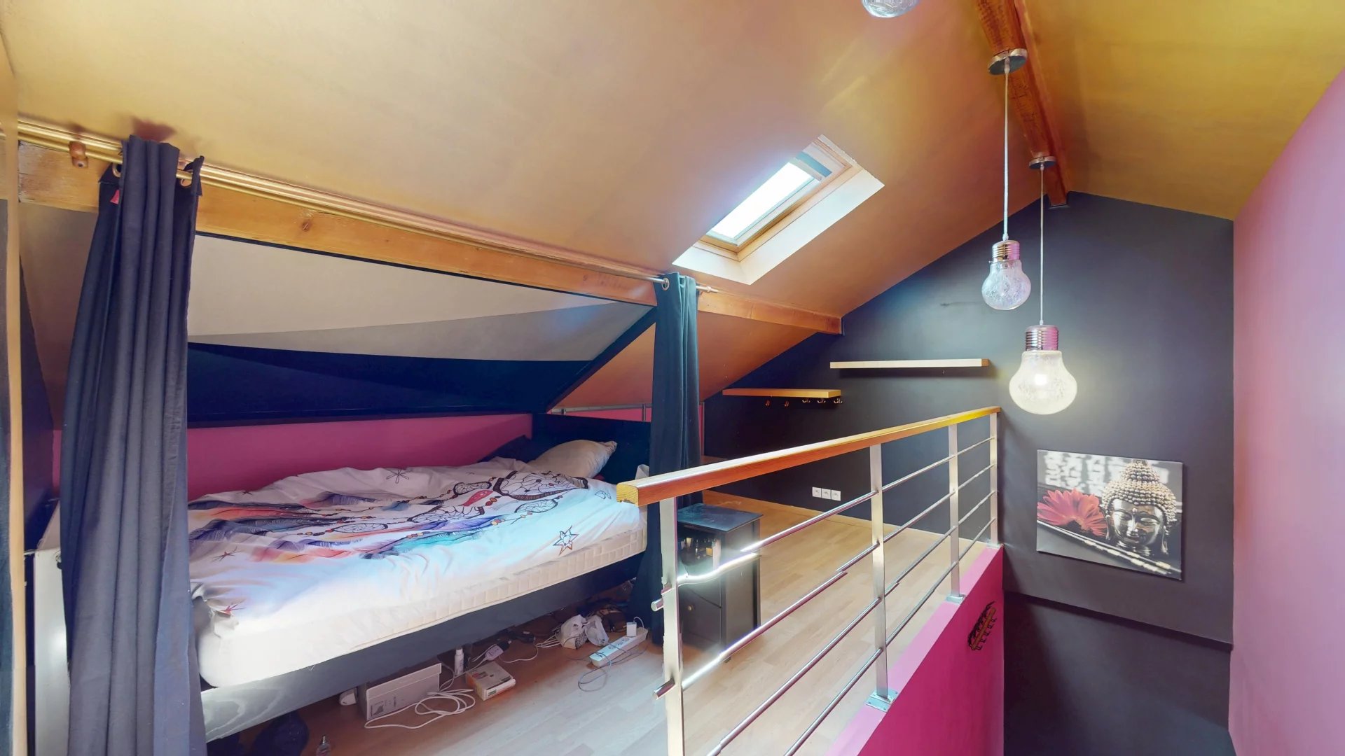À ce niveau se trouvent également une grande chambre et une salle de bains avec WC.