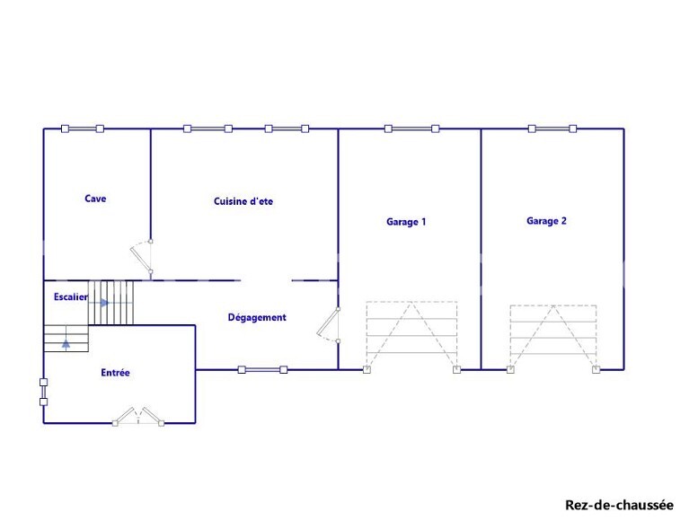 En rdc : hall, cuisine d'été (poss. studio), cave, 2 garages.
