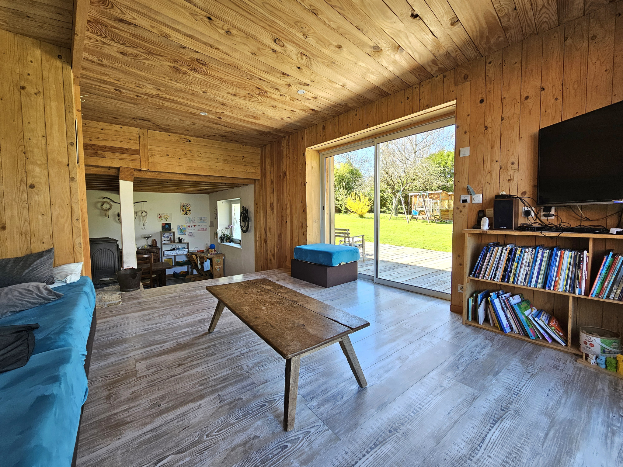 - Salon lumineux ouvrant sur la terrasse et le jardin.