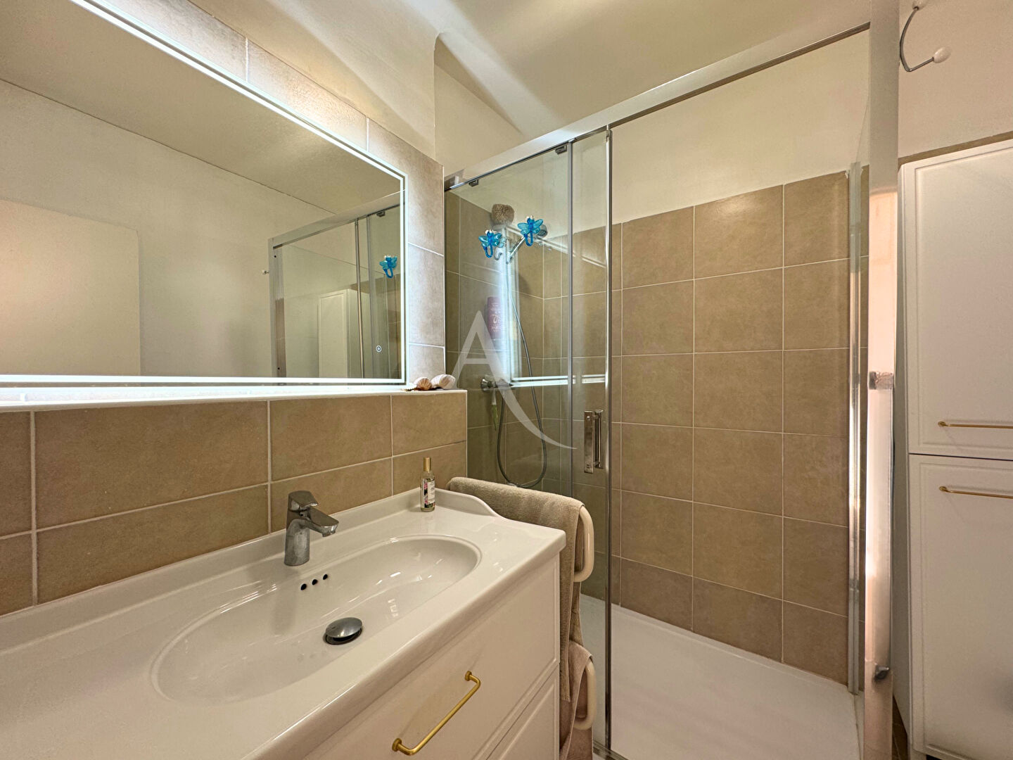 Dés l'entrée, le séjour lumineux avec sa cuisine et ses grandes baies vitrées baigne dans la lumière naturelle et constitue un véritable espace de détente le tout dans 25 m2 climatisé.