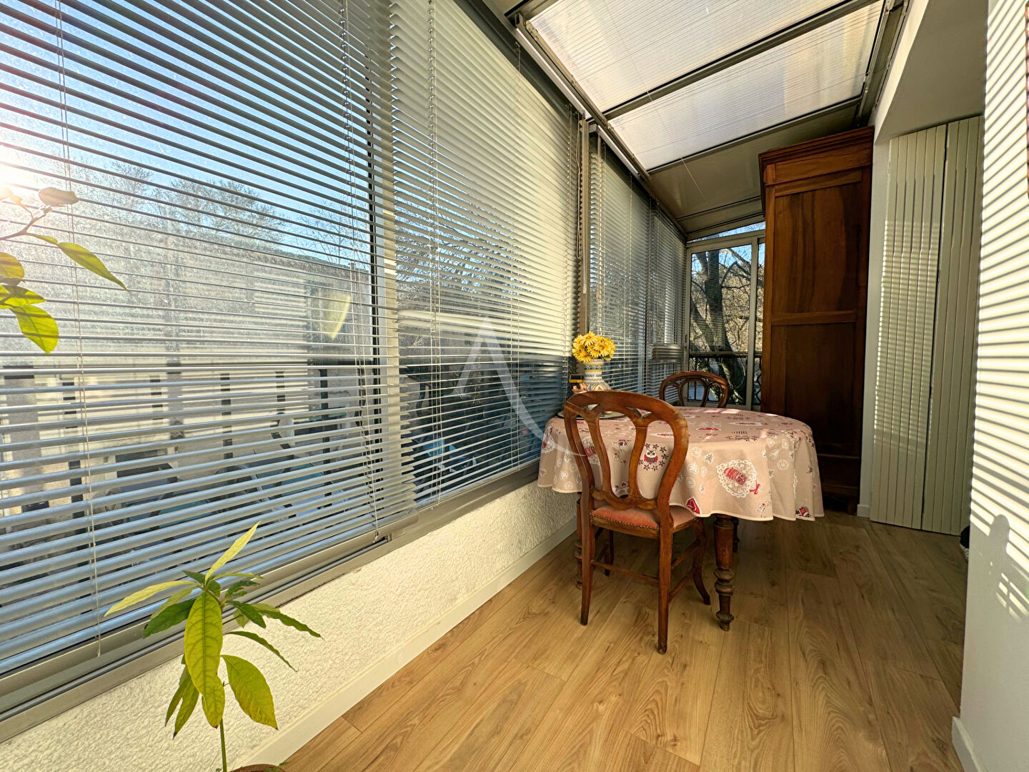 Atout majeur de la maison : une véranda ensoleillée avec vue sur le parc du château, où vous pourrez profiter des saisons, en toute tranquillité.