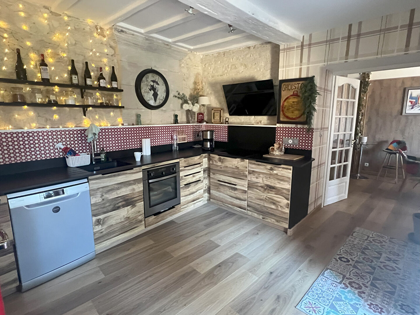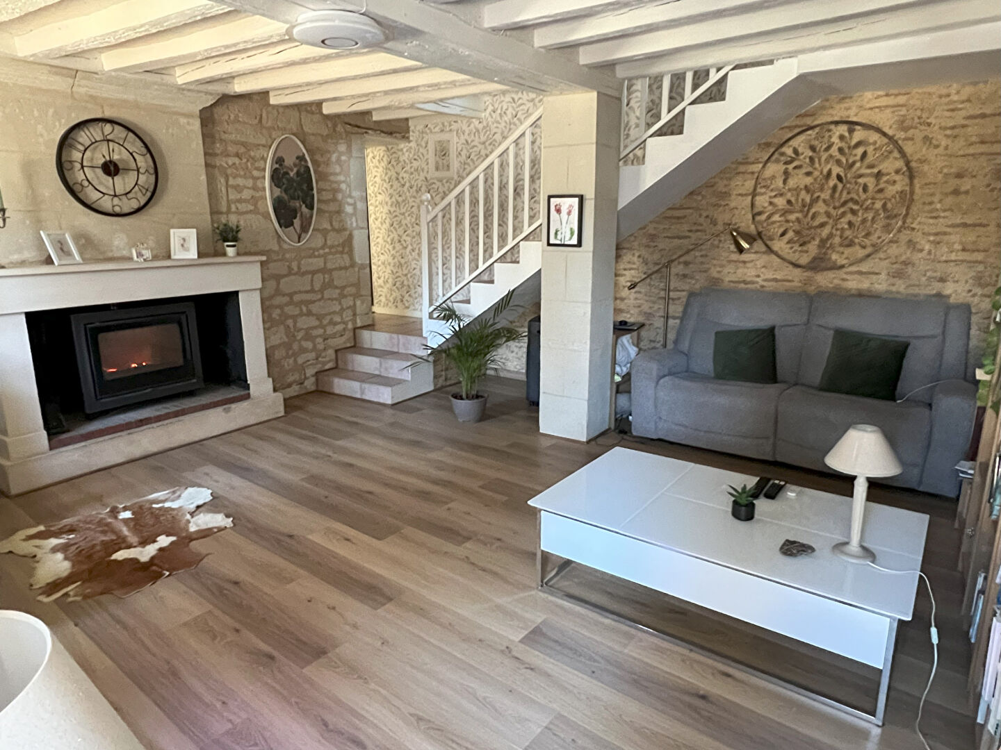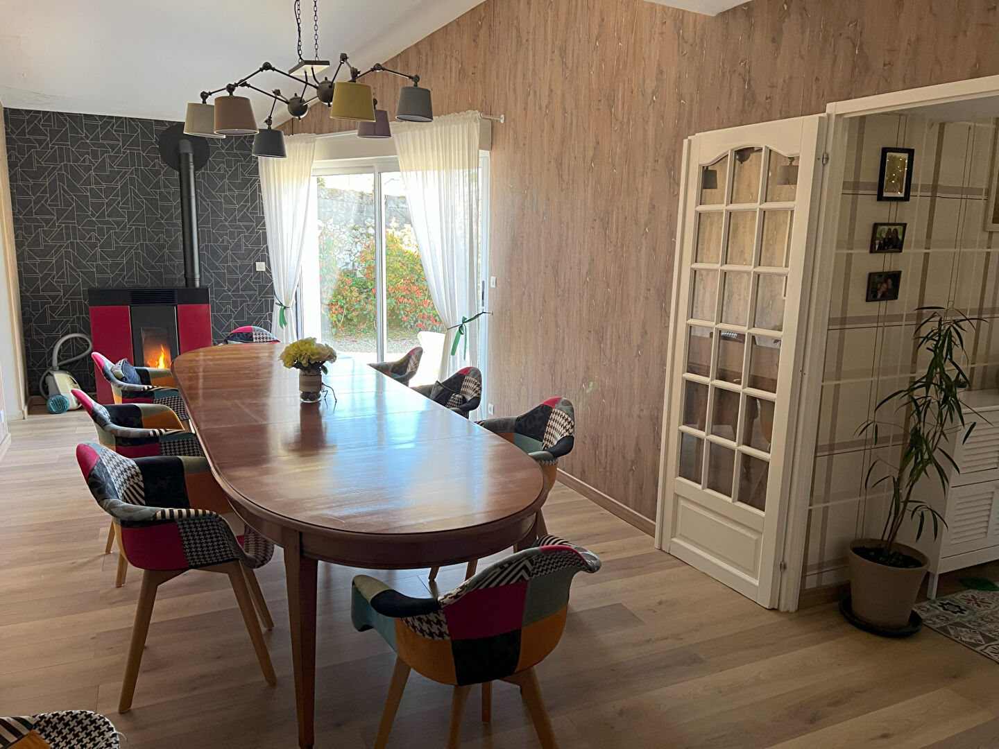 Tifaine vous propose; Cette magnifique maison en pierre, entièrement rénovée et en parfait état, offre une superficie d'environ 170 m². Dès l'entrée, un espace accueillant avec penderie et WC mène à un salon chaleureux agrémenté d'un insert. La cuisine aménagée allie charme de l'ancien et fonctionnalité, ouvrant sur une belle salle à manger avec une hauteur sous plafond remarquable, équipée d'un poêle à granulés. Une suite parentale avec salle de bains et mezzanine complète ce niveau.