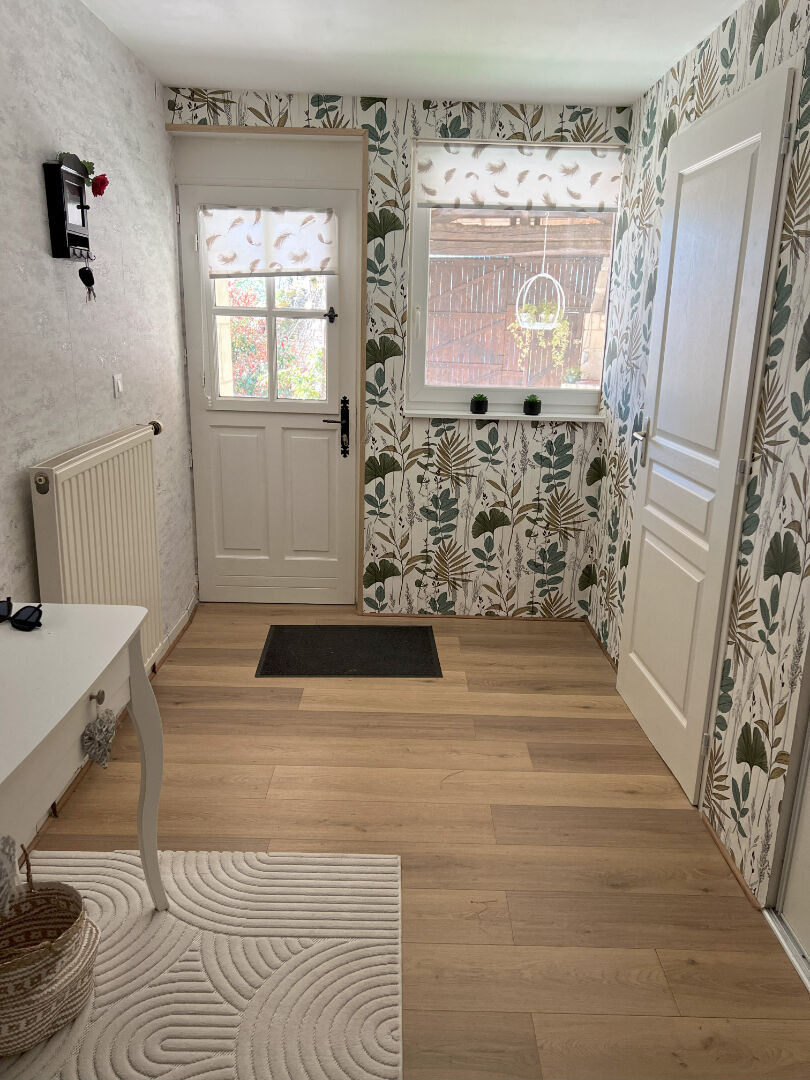 À l'étage, vous trouverez une seconde salle de bains, un WC, une buanderie ainsi que trois chambres. Un dégagement permet également d'accéder directement au terrain situé à l'arrière.