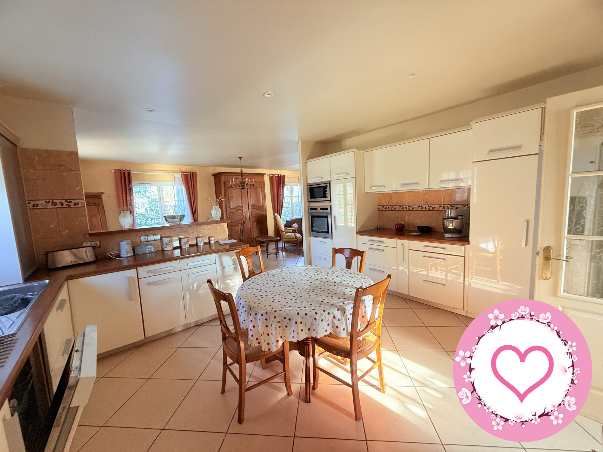 Je dispose d'une entrée vestibule avec dressing et cabinet de toilettes, ma cuisine est digne des grands chefs avec des espaces de rangement superbes, elle s'ouvre son séjour de 57 m².