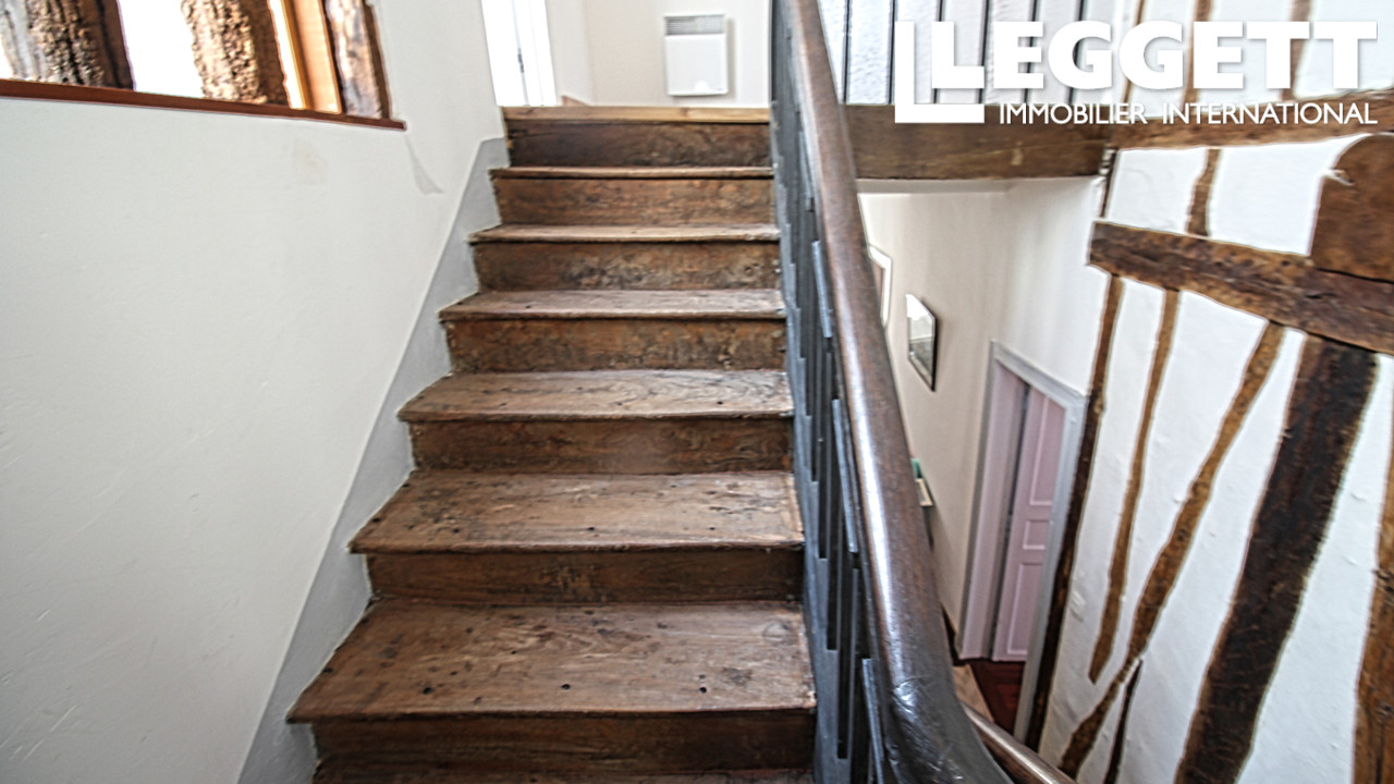 A34981SOM81 - Construite dans les années 1800, cette belle maison dans le village médiéval de Sorèze conserve des éléments anciens tels que le mur à colombages au-dessus des escaliers.