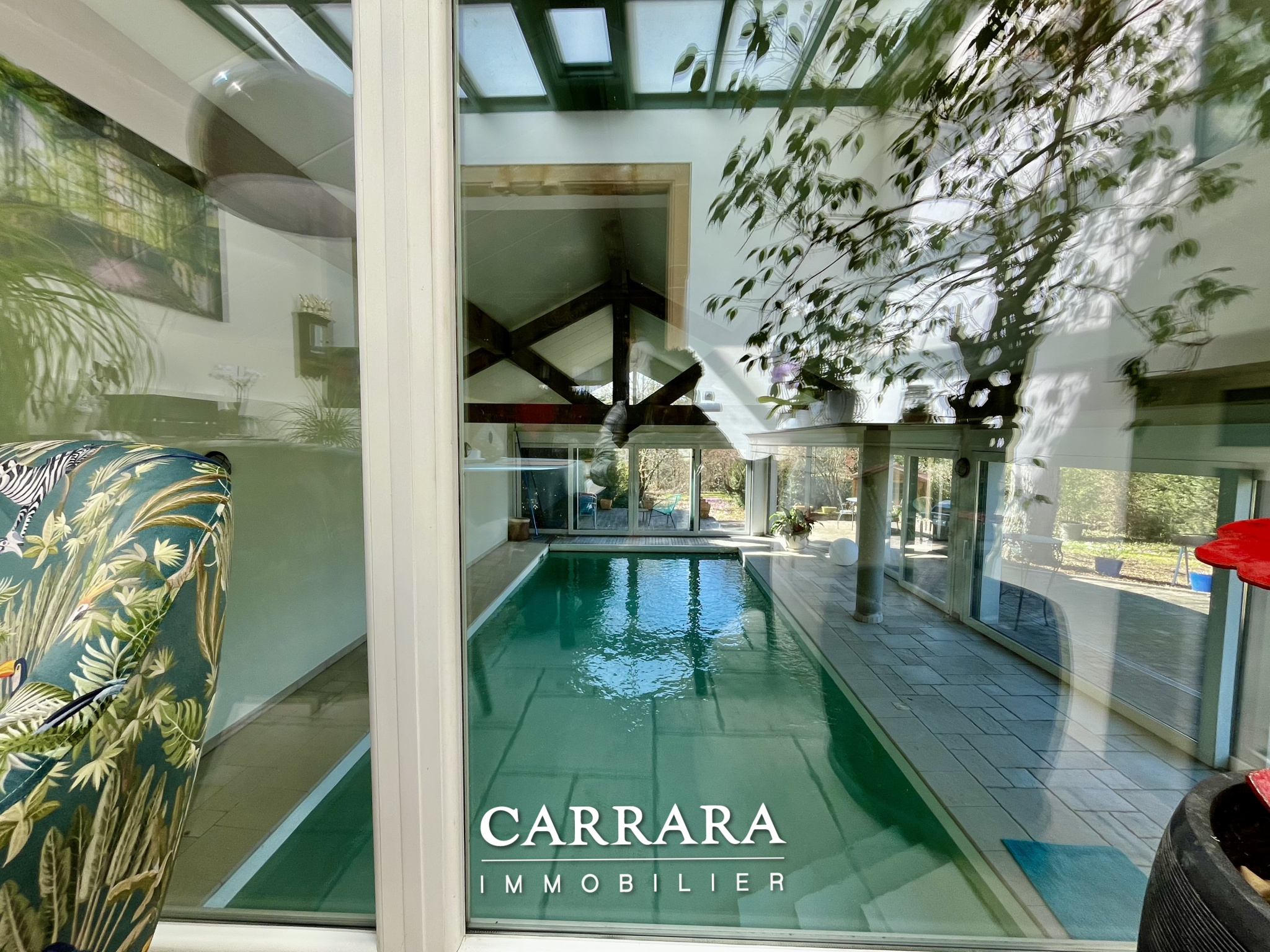 À l'abri des regards, un grand jardin arboré entoure la propriété, véritable écrin de verdure en pleine ville. À l'intérieur, une piscine chauffée prolonge ce sentiment d'évasion, parfaitement intégrée grâce à un système de chauffage indépendant, pour des moments de détente toute l'année.
