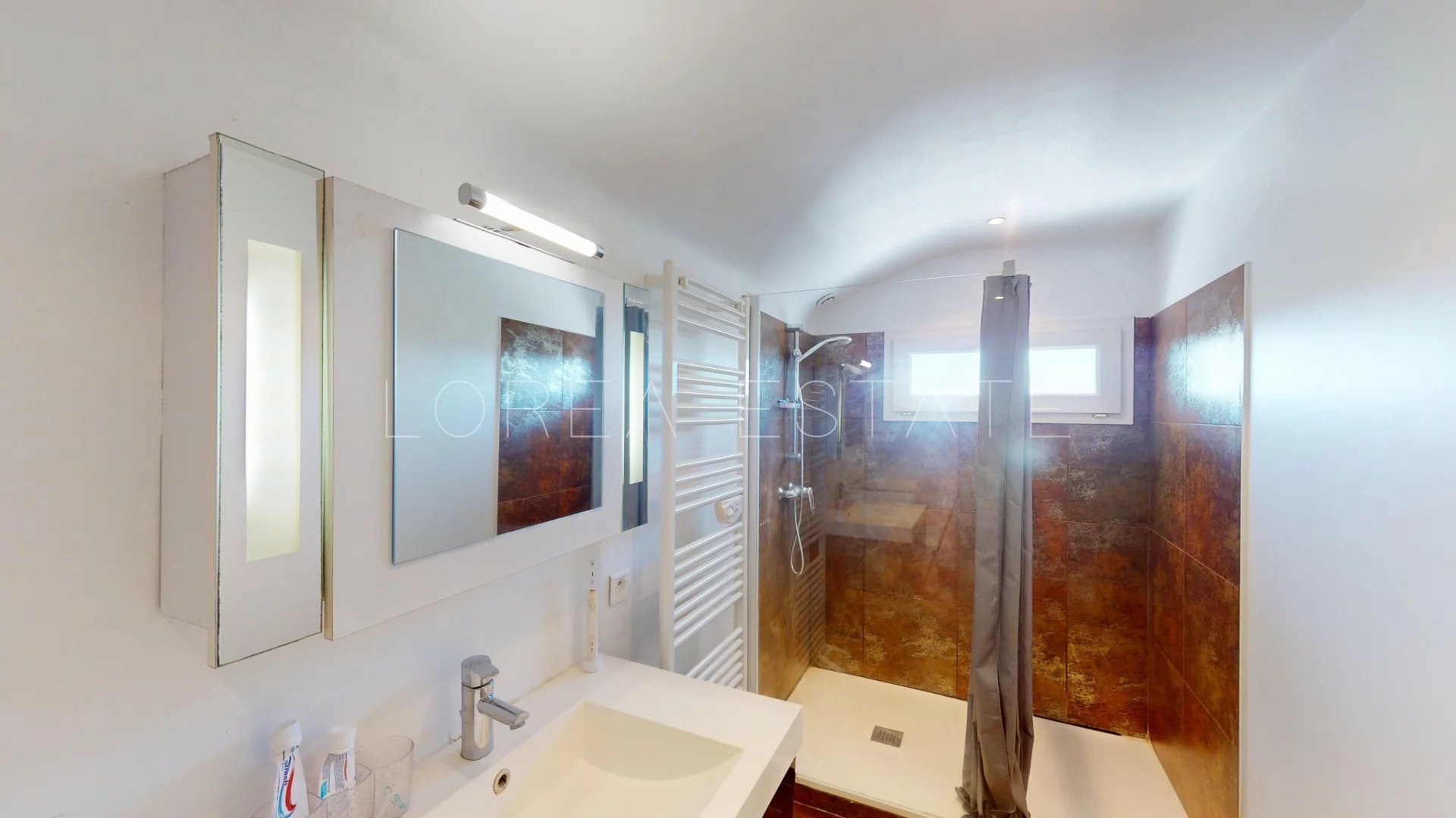 L’habitation principale est sur deux niveaux : un rez de chaussée et un 1er étage. Elle se compose de quatre chambres, d’un salon/séjour lumineux, d’une cuisine séparée, d’une salle de bain, d’une salle de douche avec WC, d’un WC supplémentaire indépendant et d'un grenier. La pièce de vie donne sur un balcon exposé plein sud-ouest avec une vue imprenable sur les montagnes. Vous bénéficiez également d’un accès sur une terrasse privative aménagée et donnant directement sur un terrain constructible en pleine propriété de plus de 1900m2 que vous pouvez utiliser comme un jardin ou en disposer autrement.