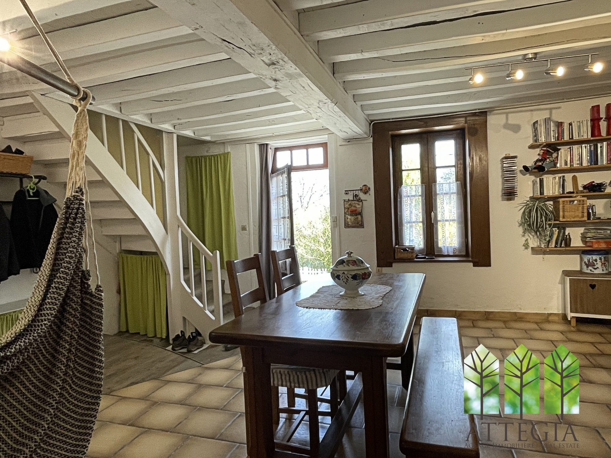 La maison en pierre avec une extension en parpaings offre un mélange de charme traditionnel et de confort moderne. Les ouvertures sont équipées de double vitrage.