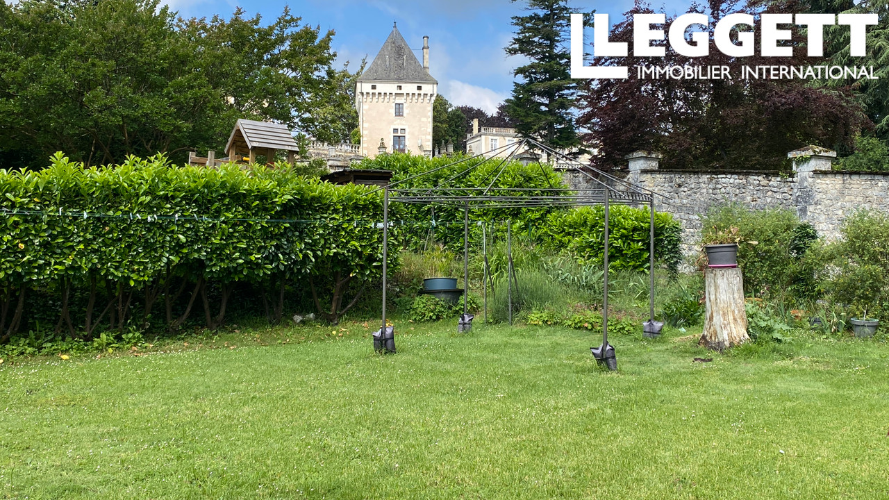 Face à la maison, un jardin clos d'environ 400 m² avec des arbres fruitiers permet de profiter d'une vue splendide sur le château de Charras.