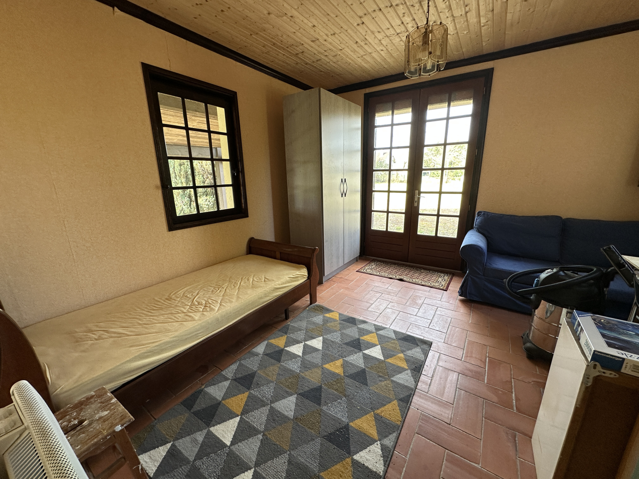 Ce bien se compose d'une pièce de vie avec cheminée et cuisine ouverte, un couloir desservant une buanderie ainsi qu'une première chambre donnant accès sur le jardin. Vous découvrirez un second couloir avec deux autres chambres ainsi qu'une salle de bains et WC séparé.