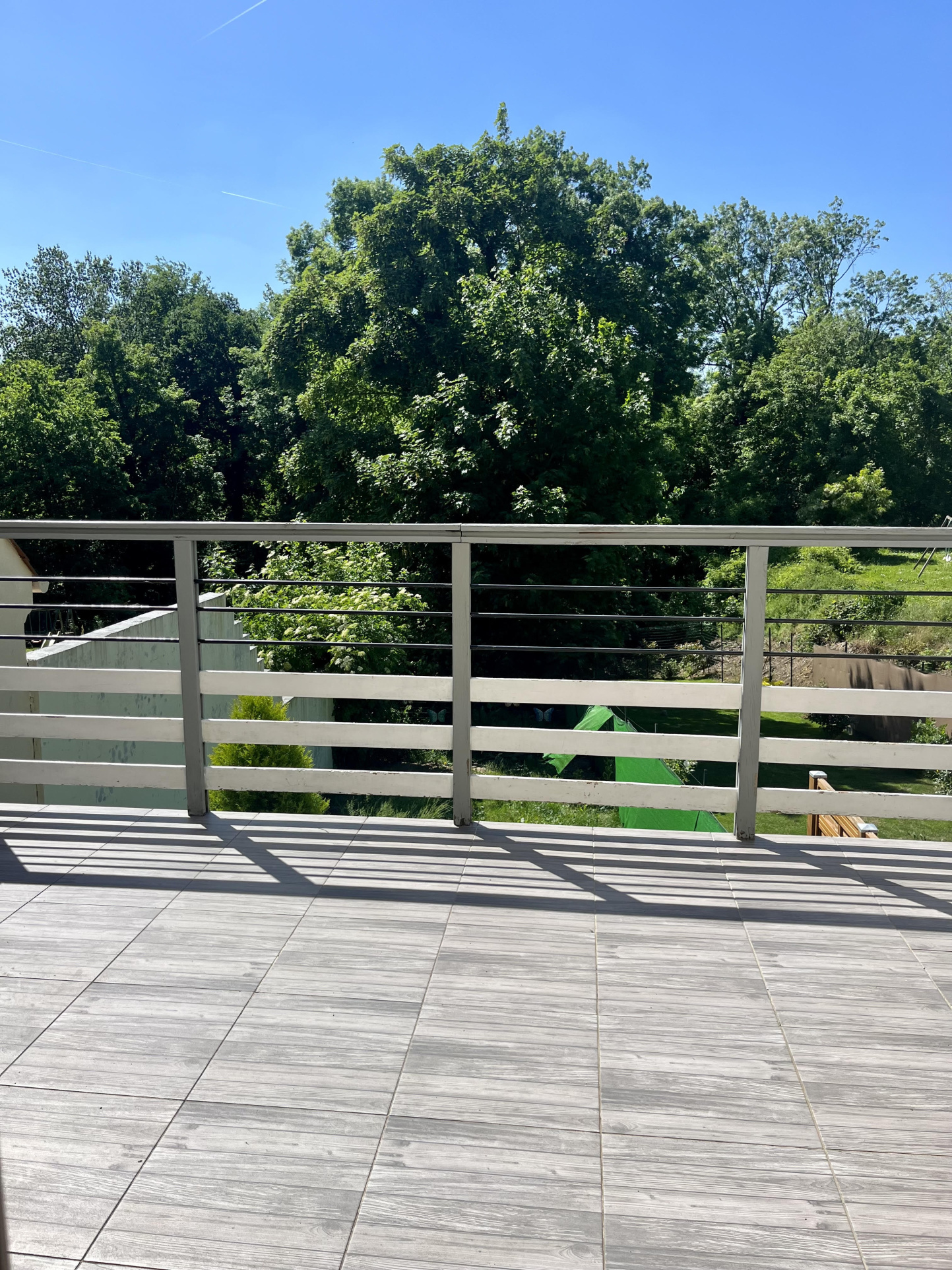 Terrasse et jardin clos. L'ensemble sur 205m2 de terrain.