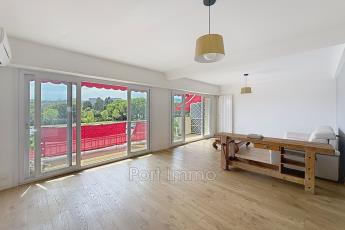 EXCLUSIVITE : COUP DE COEUR pour cet appartement TRAVERSANT face à l'Hippodrome, 2 pièces de 63m² exposition EST/OUEST, composé : séjour salle à manger de 30m² ouvert sur une terrasse de 8.74m² vue Hippodrome Mer latérale et Haut de Cagnes, cuisine équipée, dégagement avec placards, salle de douche à l'Italienne, wc indépendant, chambre avec balcon exposition Est. Parking collectif, cave 7.87m². PRESTATIONS MODERNES et de qualités, parquet véritable, climatisation, double vitrage, porte blindée, volets et bannes solaires électriques, copropriété résidentielle et RAVALÉE.