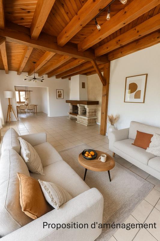Dès l'entrée, vous serez séduit par la luminosité et les volumes généreux de la pièce de vie traversante, agrémentée d'une cheminée à insert pour des soirées conviviales.
