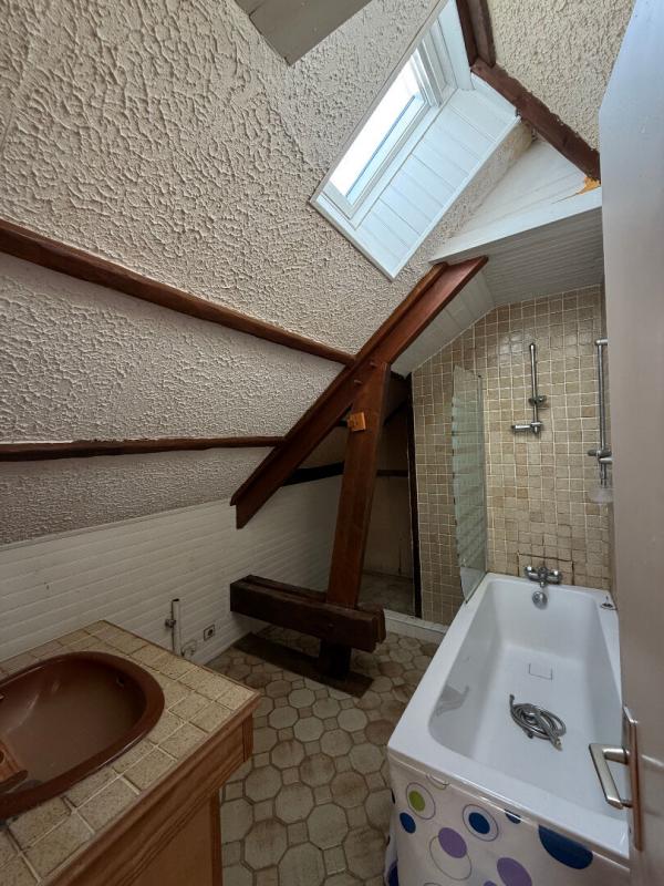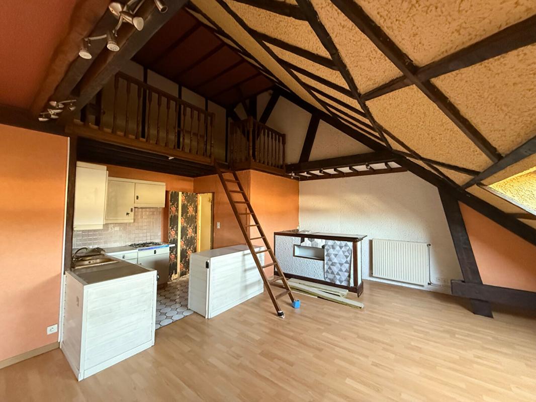 56400. Auray. En exclusivité, très bel appartement LOFT T4 à rénover situé au premier et dernier étage d'une élégante maison d'Architecte divisée en 3 lots dans quartier calme recherché, proche Gare TGV, écoles et commerces. D'une surface de 105m2, Il offre une entrée accessible par un escalier en métal extérieur récent ouvrant sur un vaste espace de vie ouvert de 47m2 avec séjour salle à manger, coin cuisine aménagée équipée et mezzanine, 3 chambres dont 2 de 13 m2 sans rampants orientés Sud, coin bureau, sdb, wc, local à vélos, parking, jardinet de 50m2, grenier. Chaudière gaz récente, appartement relié à la fibre.