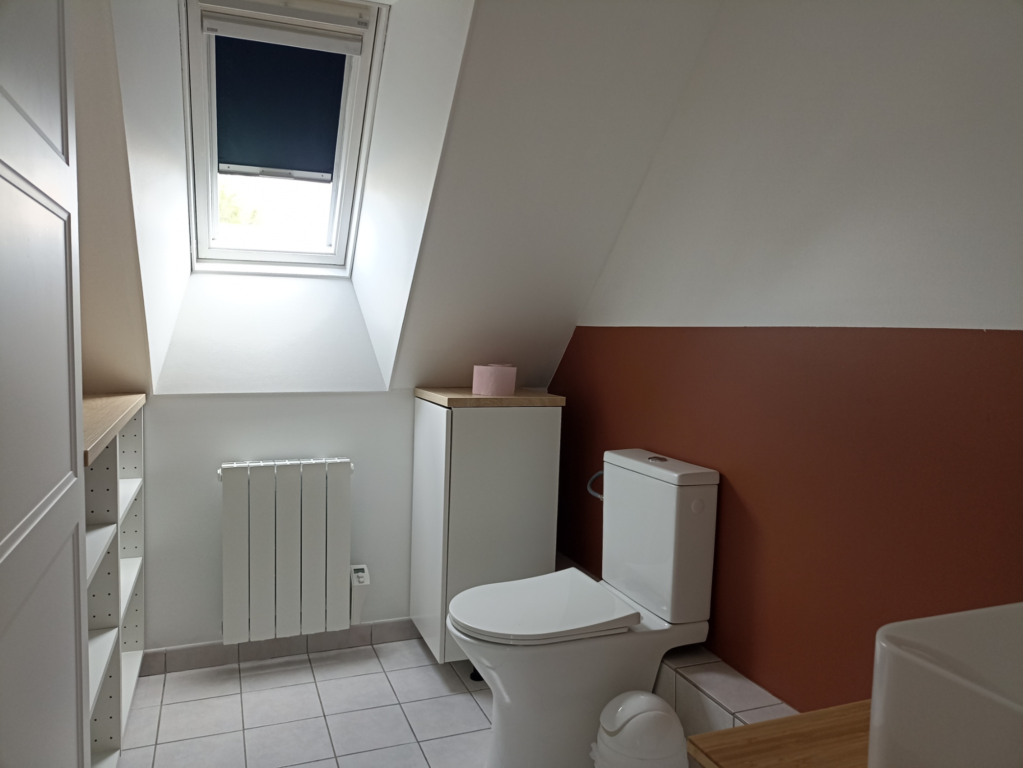 À l'étage, un espace nuit bien agencé vous attend, composé de trois chambres confortables, idéales pour accueillir votre famille ou vos invités. Un cabinet de toilette complète cet étage, apportant un supplément de commodité.