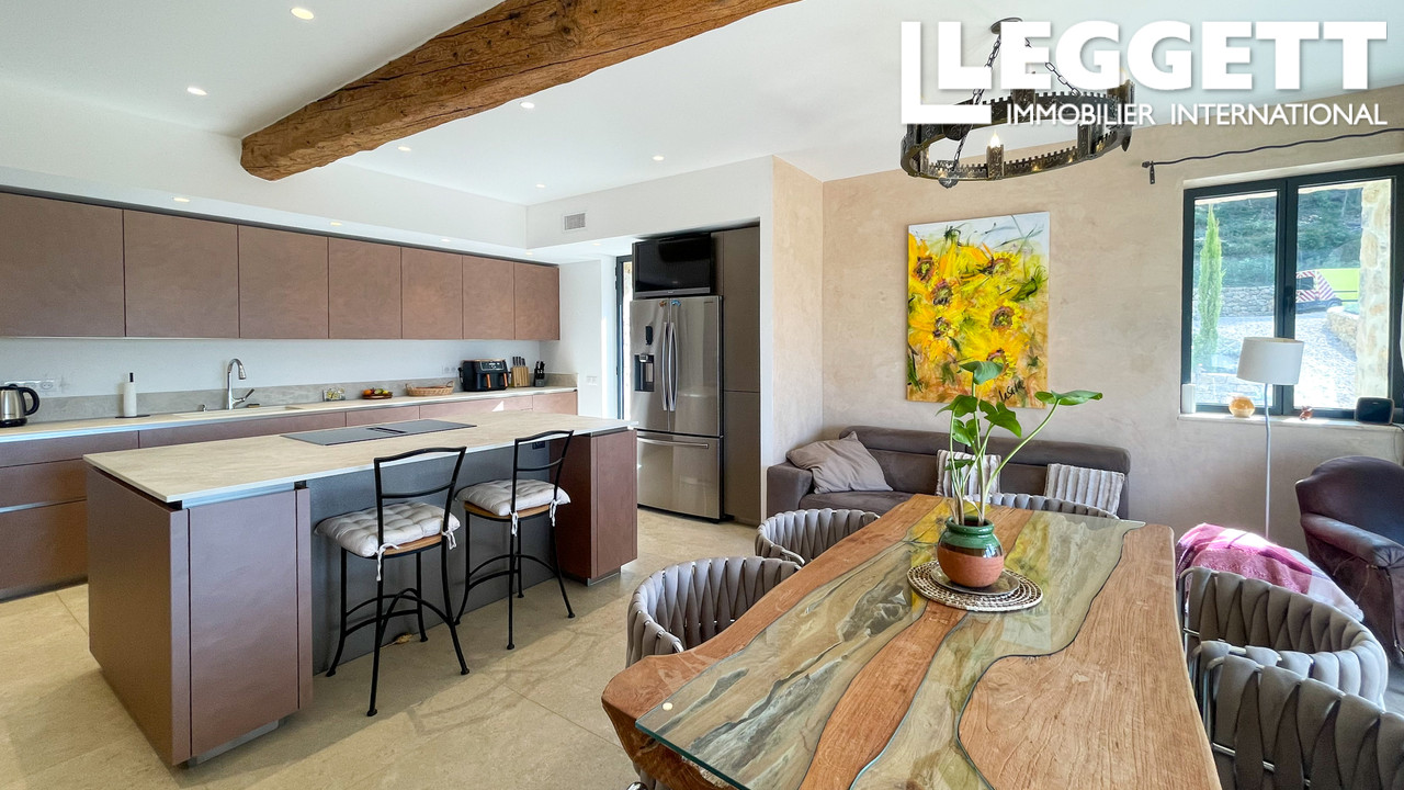 A35759JTO83 - Cette superbe bastide en pierre est située dans un endroit calme, offrant une vue imprenable sur la vallée et 7 hectares de terres et de forêts privées. La propriété comprend un salon spacieux avec une grande cheminée, cinq chambres avec salle de bains, une cave à vin et une belle cuisine.