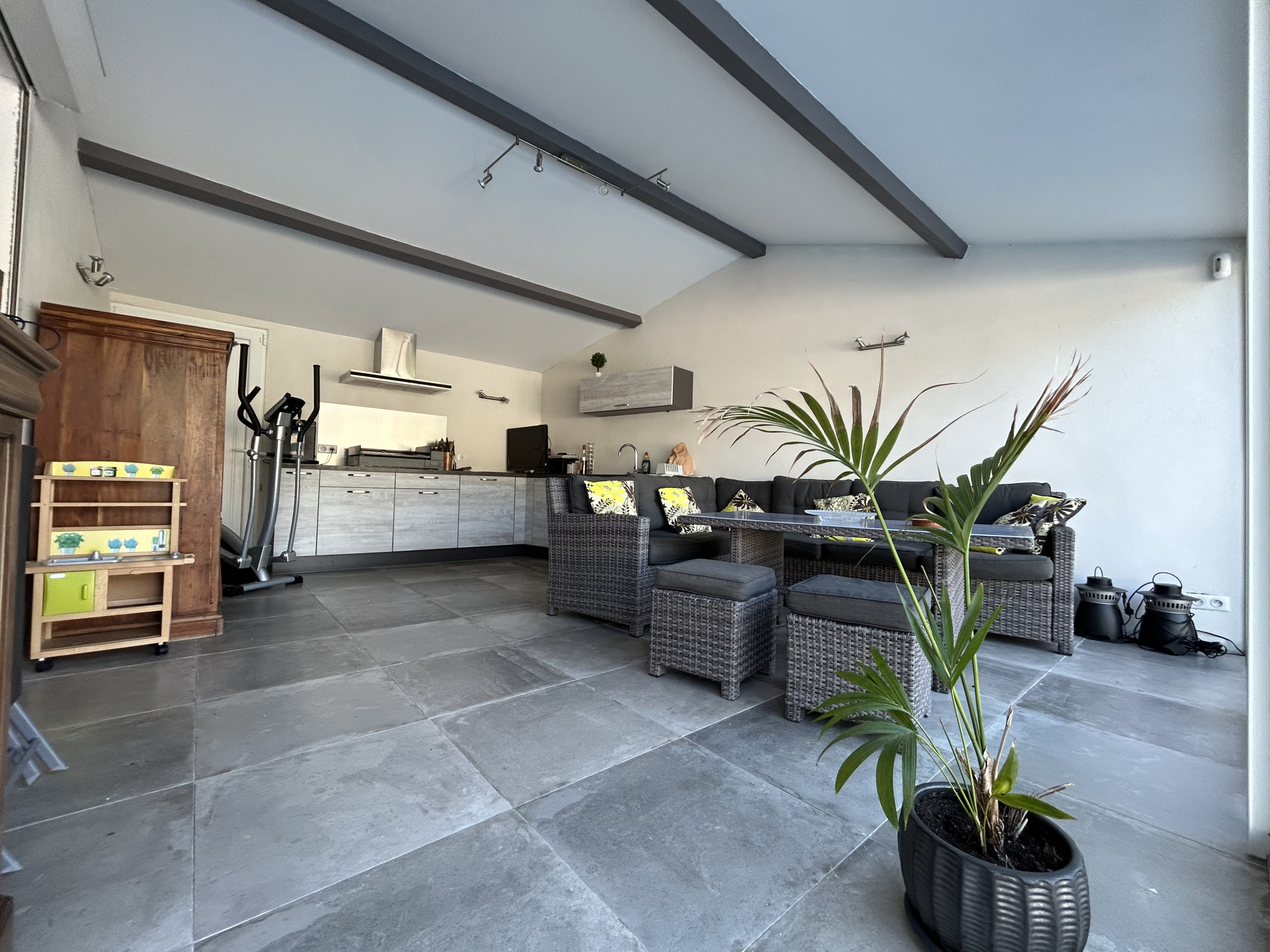Cette maison spacieuse se compose d'un vaste espace de vie lumineux avec une cuisine ouverte et entièrement équipée, offrant un accès direct à un agréable jardin. Vous serez charmé par la belle hauteur sous plafond du salon, ainsi que par sa cheminée qui apporte une touche chaleureuse à l'ensemble.