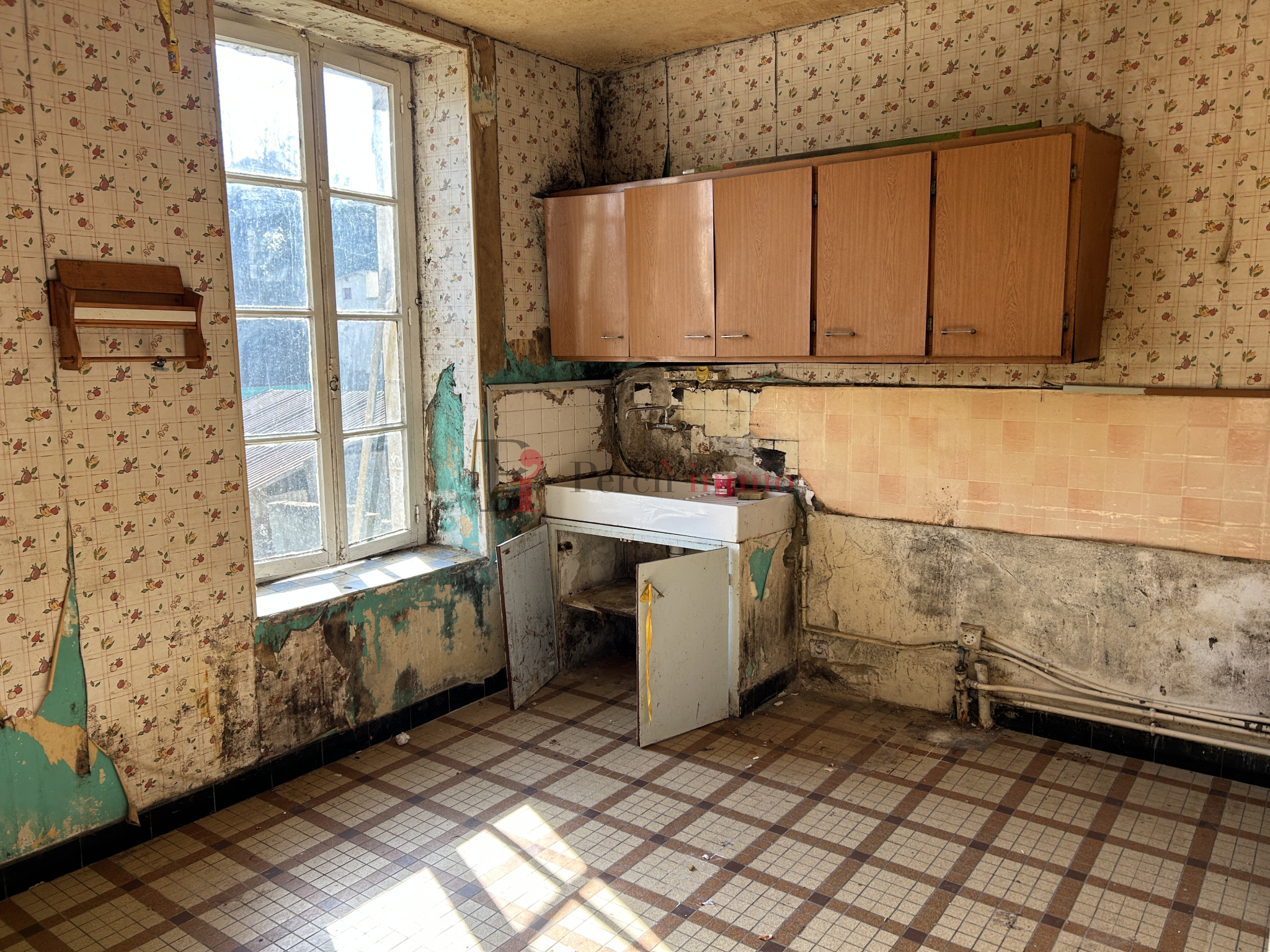 Maison de ville à rénover comprenant: -au rez-de-chaussée, couloir d'entrée, salon/séjour de 23m2, cuisine, dégagement desservant salle d'eau, wc, buanderie, -à l'étage: couloir desservant 3 chambres, salle d'eau, débarras. Cave et chaufferie en sous-sol. Jardin avec divers abris.