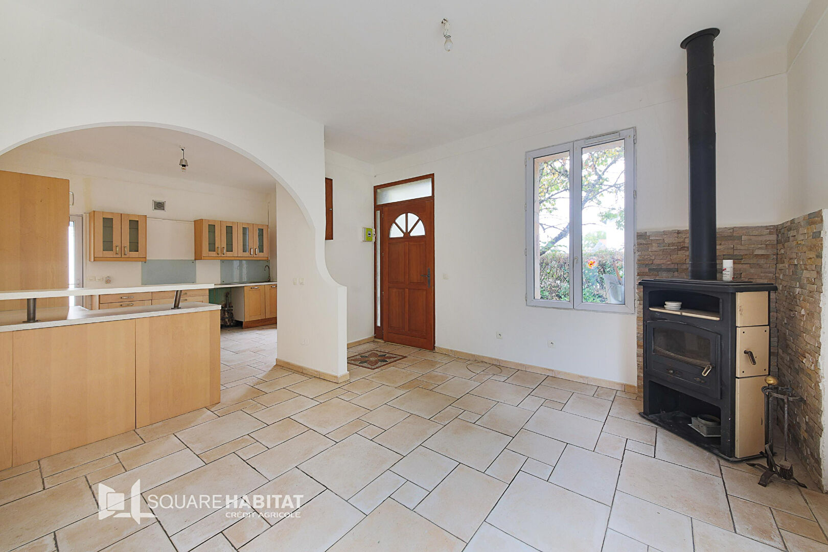 - Une spacieuse pièce de vie baignée de lumière, agrémentée d'un poêle à bois pour des ambiances chaleureuses