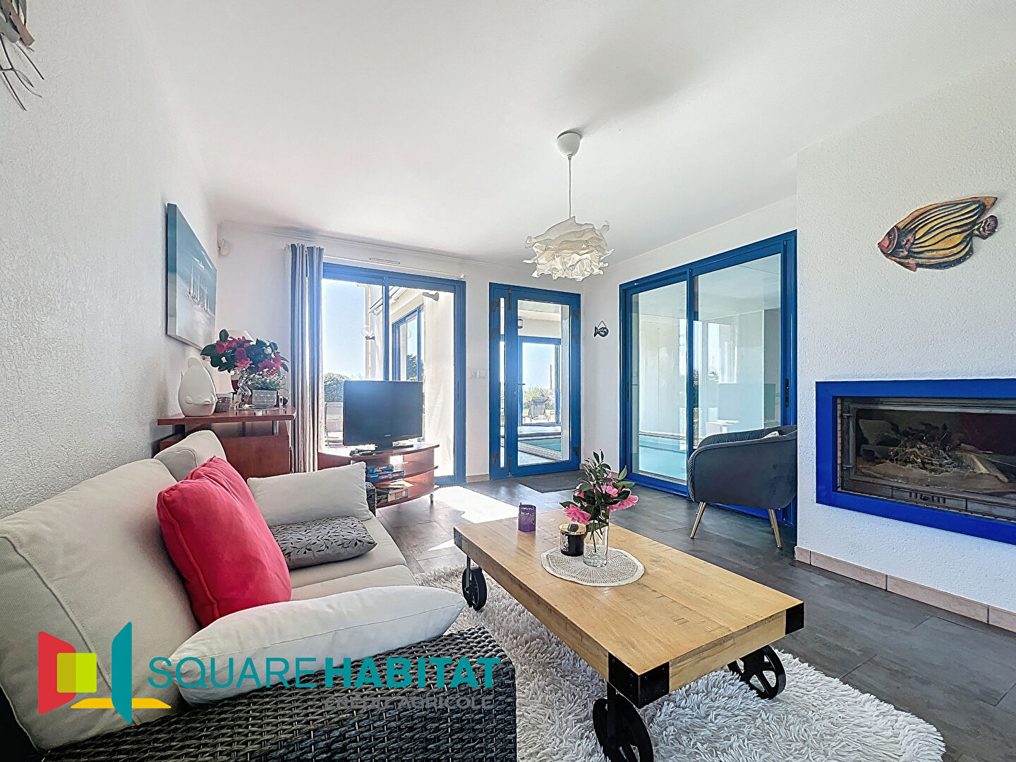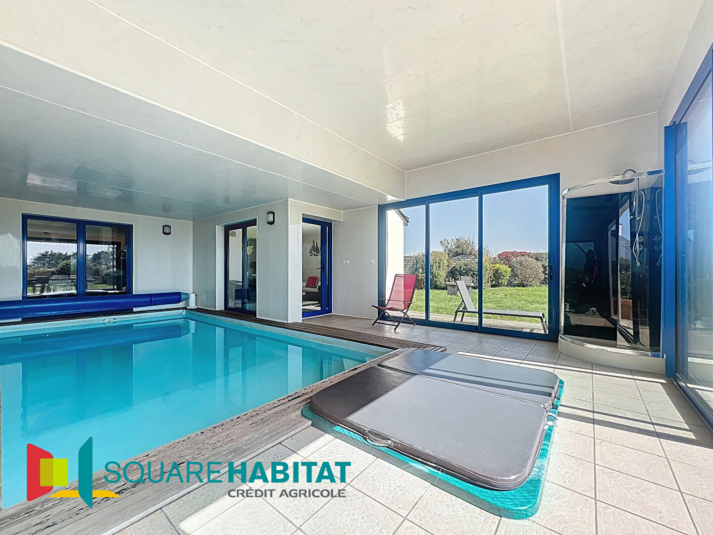 D'une entrée qui dessert une buanderie, une cuisine aménagée et équipée, une suite parentale avec salle de bains et wc, un vaste salon-séjour, une salle de billard et une piscine intérieure avec jacuzzi, sauna et douche.
