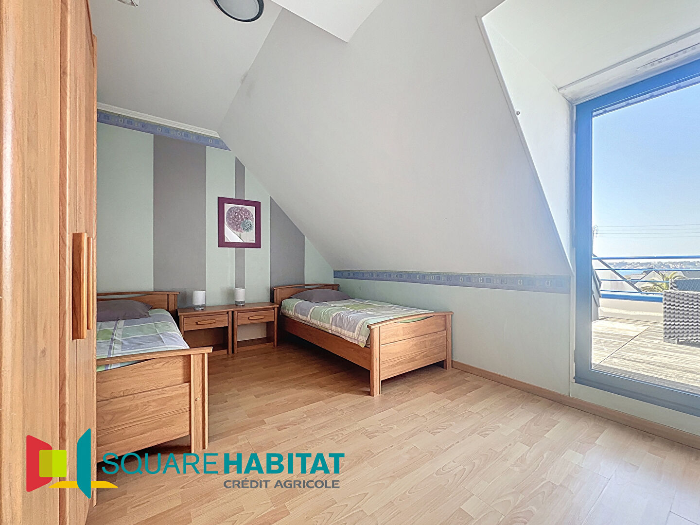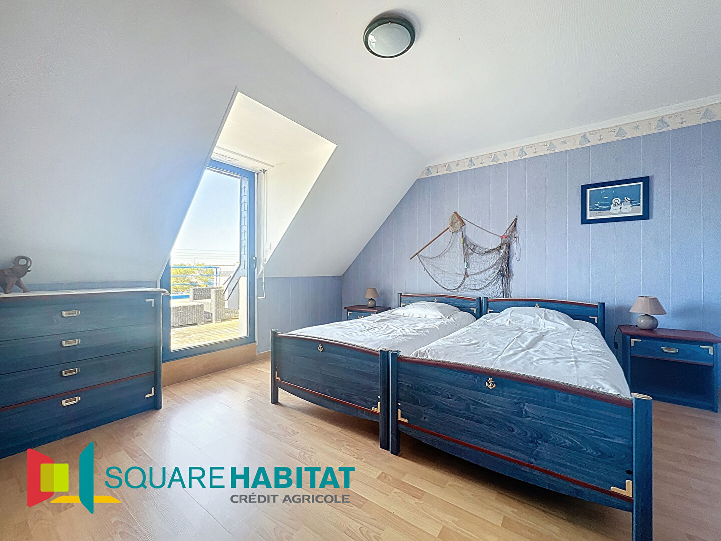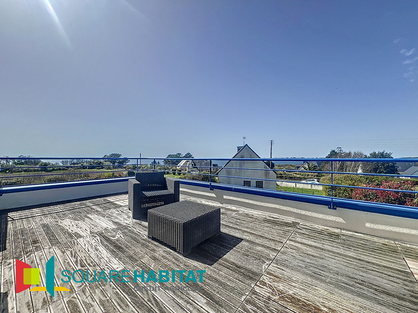 L'étage quant à lui dessert un palier, un wc, 3 chambres dont 2 avec accès à une terrasse d'environ 26 m2 exposée ouest et une vue panoramique sur la Mer et 2 salles d'eau.