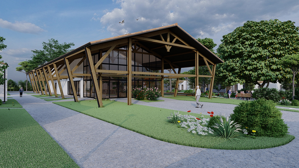 Il est agrémenté de la Maison du Hameau, espace de plus de 230 m2 dédié aux échanges, à la détente, a